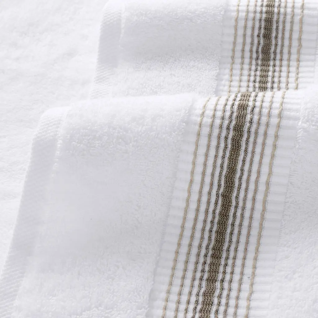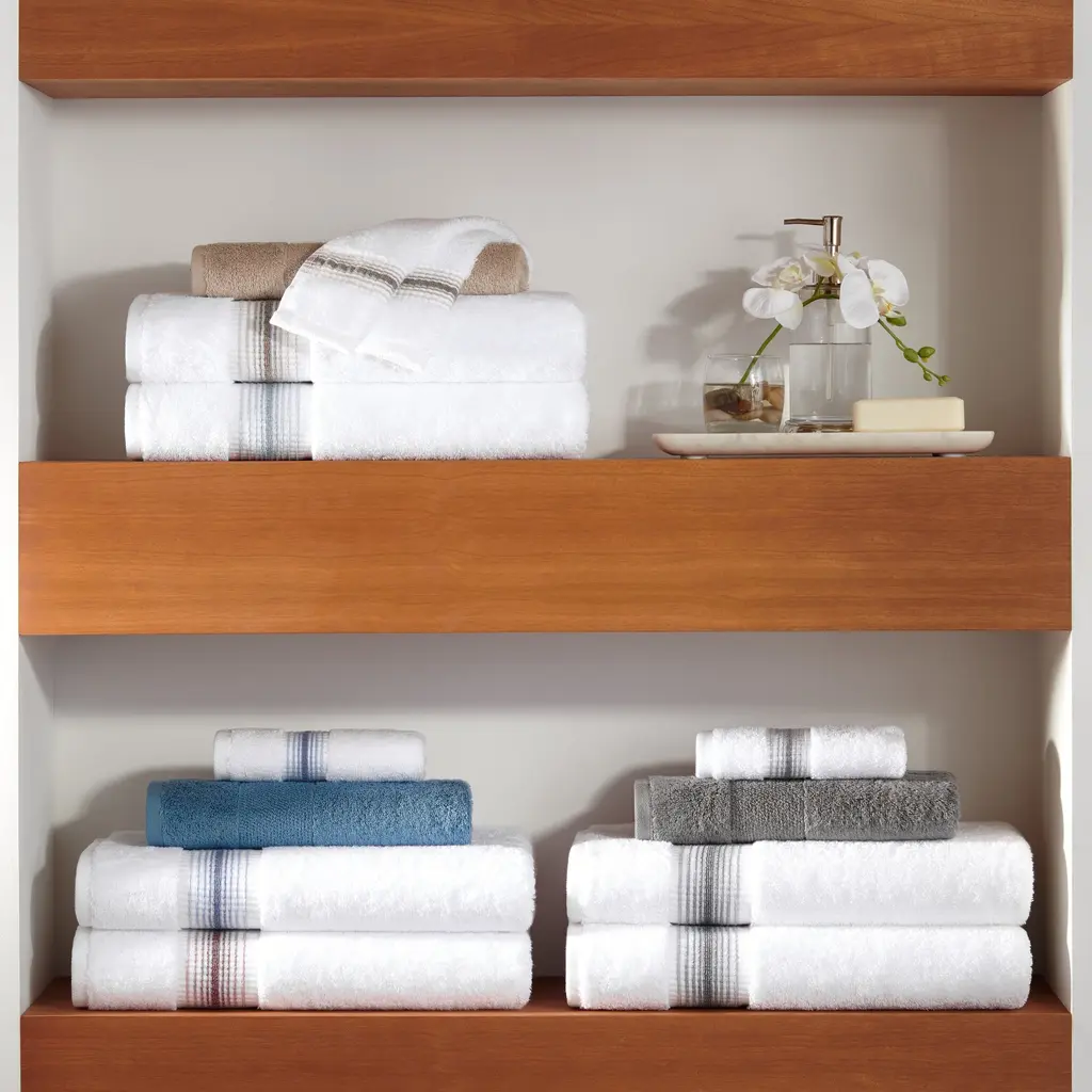 Made from the finest quality Aegean ring spun cotton, Aston & Arden bathroom towel collection features a low twist for the ultimate feeling of soft fluffiness. We took no shortcuts with these Turkish towel sets for bathroom. Refusing to compromise on quality, our luxury towel sets are made with high-quality Aegean Turkish cotton. Our classic white towels with an ombre striped border brighten up any bathroom. All of our Turkish bath towels are oversized and thicker than regular bath towels. The premium bathroom towel sets are available in trending colors to suit a modern bathroom. Always wash new bath towels set before use as some lint may be generated after the first wash. Machine Wash with like colors. Do not bleach. Tumble dry low. Quality means longevity. If you care for your bath towel sets properly, your extra-large bath towels will look new and fresh even after multiples washes.