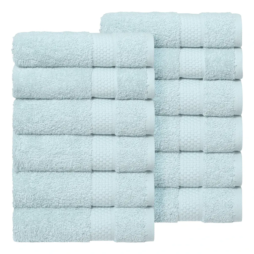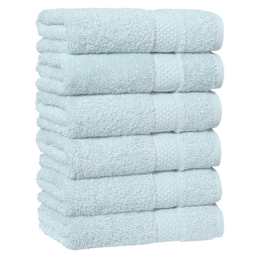 Authentic Hotel And Spa 100% Aeagean Long Staple Turkish Cotton Starlight Terry Hand Towels (Set Of 6) - Ice Blue