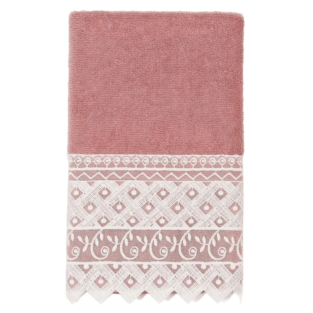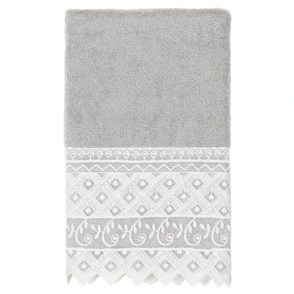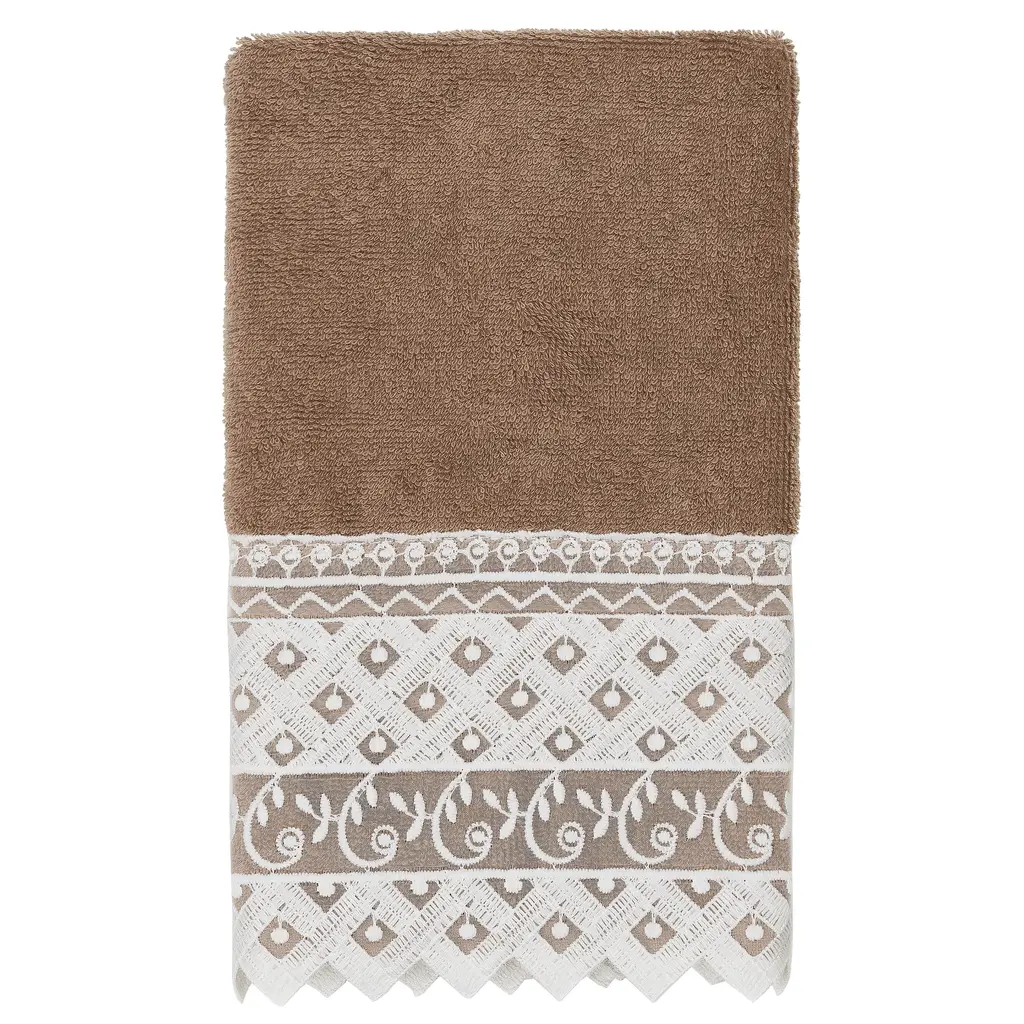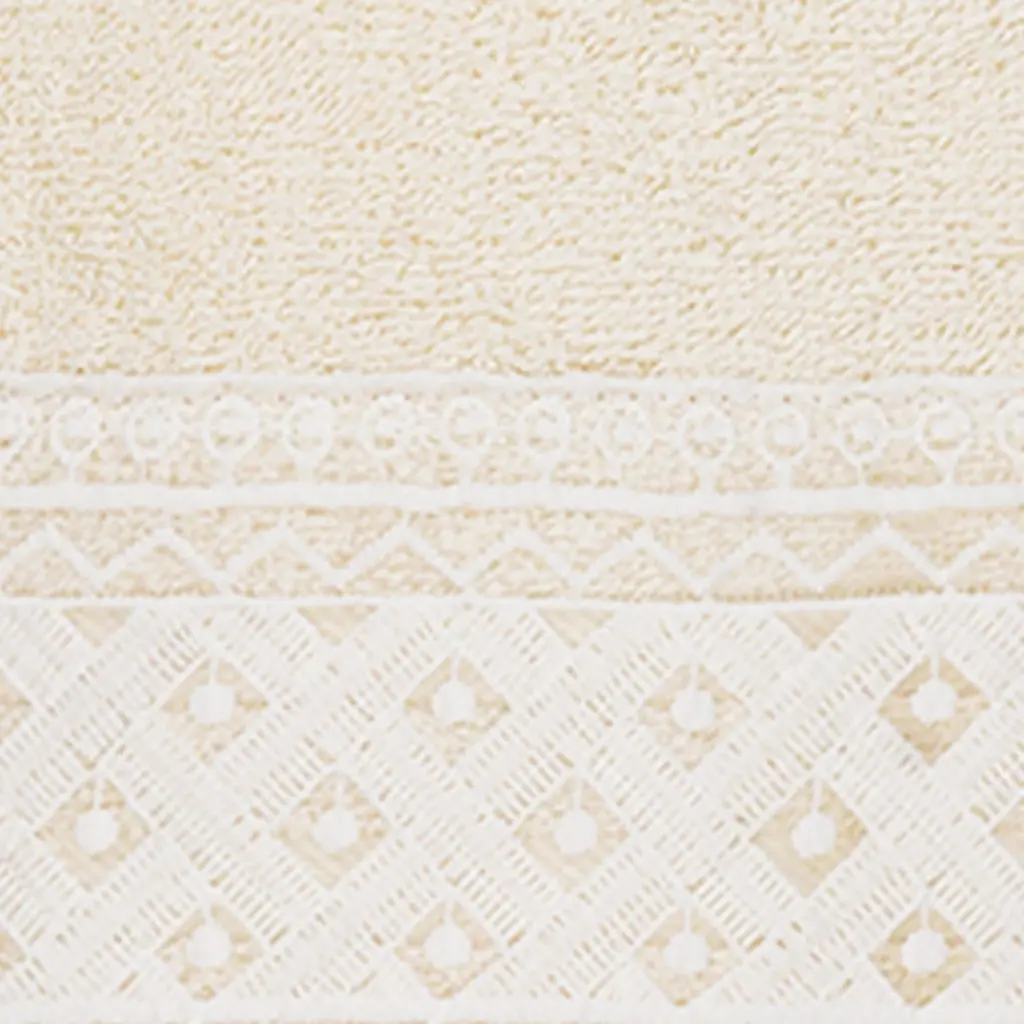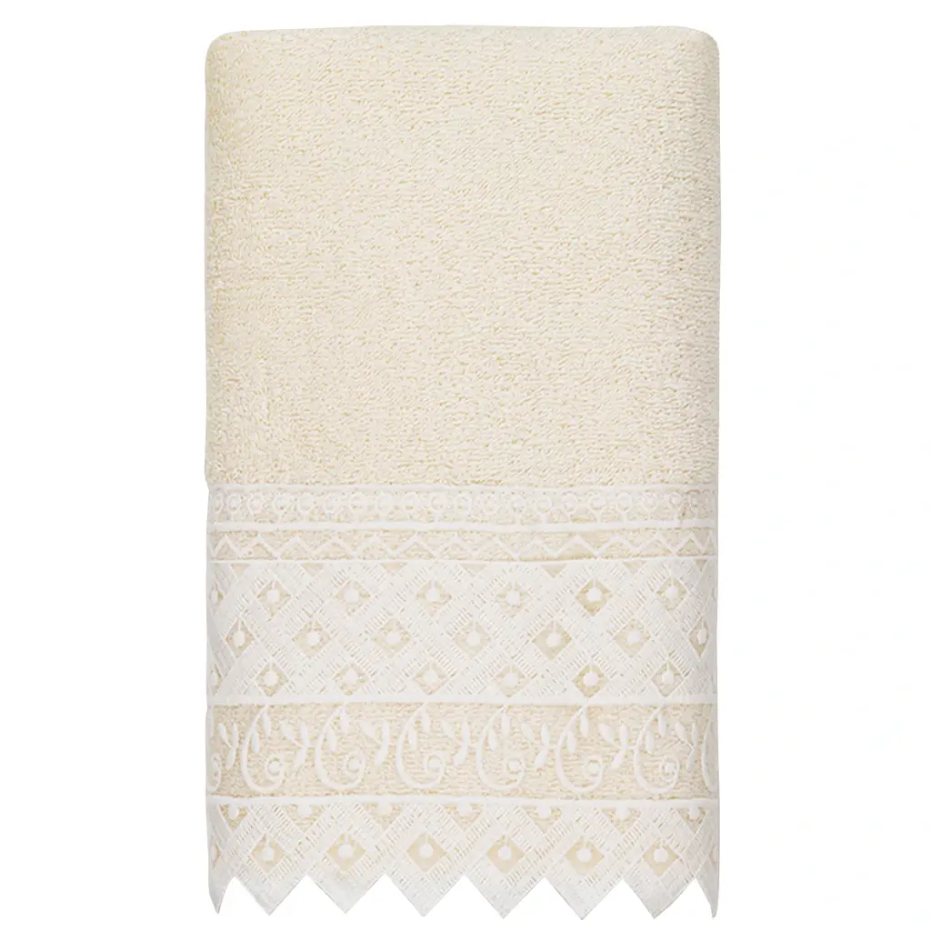 Authentic Hotel And Spa 100% Turkish Cotton Aiden White Lace Embellished Hand Towel - Cream