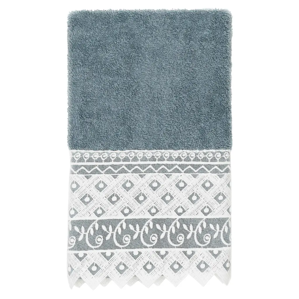 The Aiden Lace Towel Collection by Authentic Hotel and Spa features an intricate floral trellis motif, embroidered on a white organza lace border with scalloped bottom edge. These soft and luxurious towels are made of 100% premium Turkish Cotton and offer lasting absorbency and superior durability. The Aiden Lace Collection will bring a graceful note to your bath decor.100% Premium Turkish CottonSuperbly absorbent and quick dryingAvailable in a range of lovely towel colorsMachine wash cold, No bleach, line dry or dry cleanIncludes 1 hand towel (16" x 30")Made in TurkeyProudly Embellished in USA