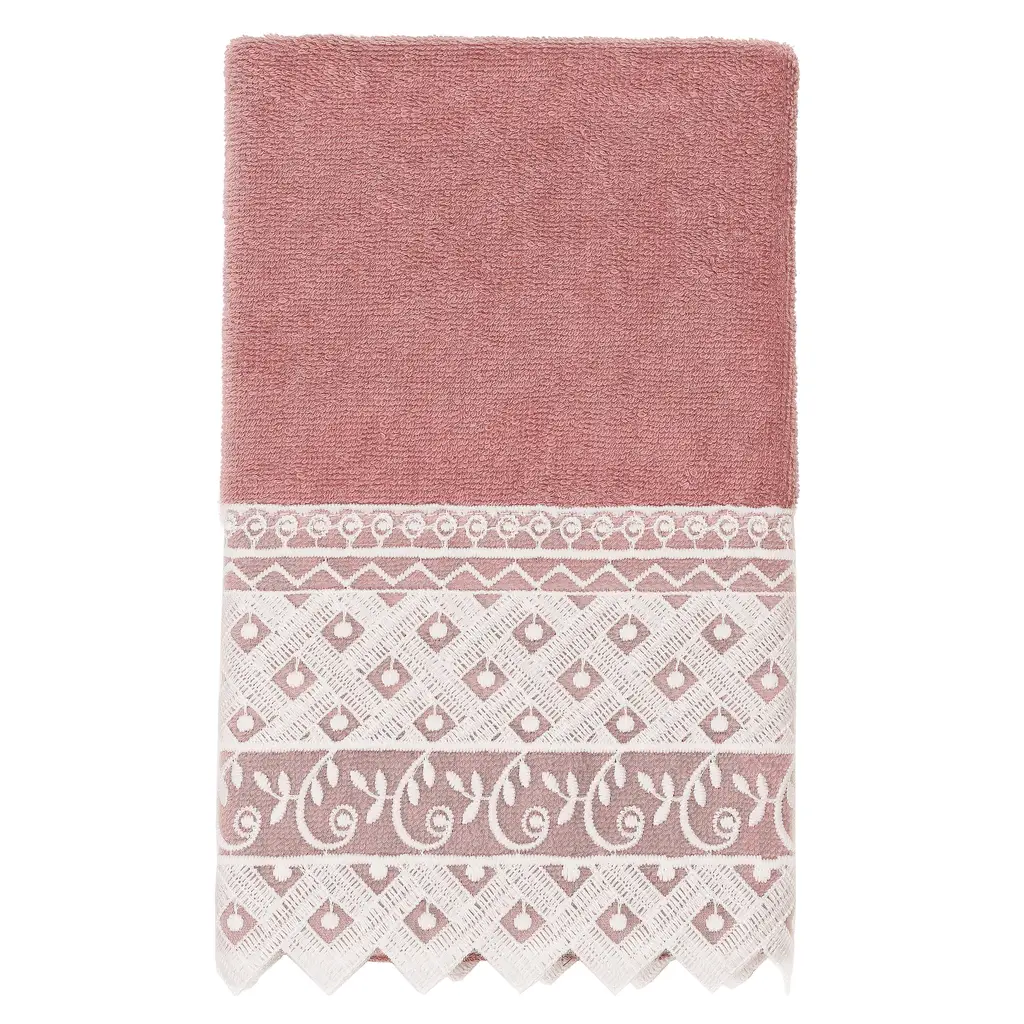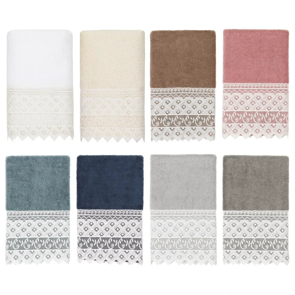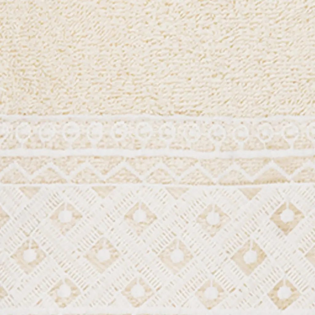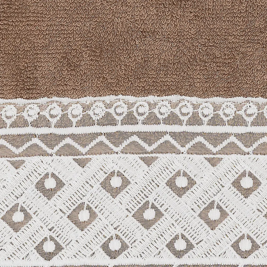 Authentic Hotel And Spa 100% Turkish Cotton Aiden White Lace Embellished Hand Towel - Latte