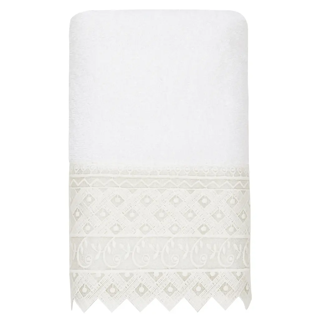 The Aiden Lace Towel Collection by Authentic Hotel and Spa features an intricate floral trellis motif, embroidered on a white organza lace border with scalloped bottom edge. These soft and luxurious towels are made of 100% premium Turkish Cotton and offer lasting absorbency and superior durability. The Aiden Lace Collection will bring a graceful note to your bath decor.100% Premium Turkish CottonSuperbly absorbent and quick dryingAvailable in a range of lovely towel colorsMachine wash cold, No bleach, line dry or dry cleanIncludes 1 hand towel (16" x 30")Made in TurkeyProudly Embellished in USA