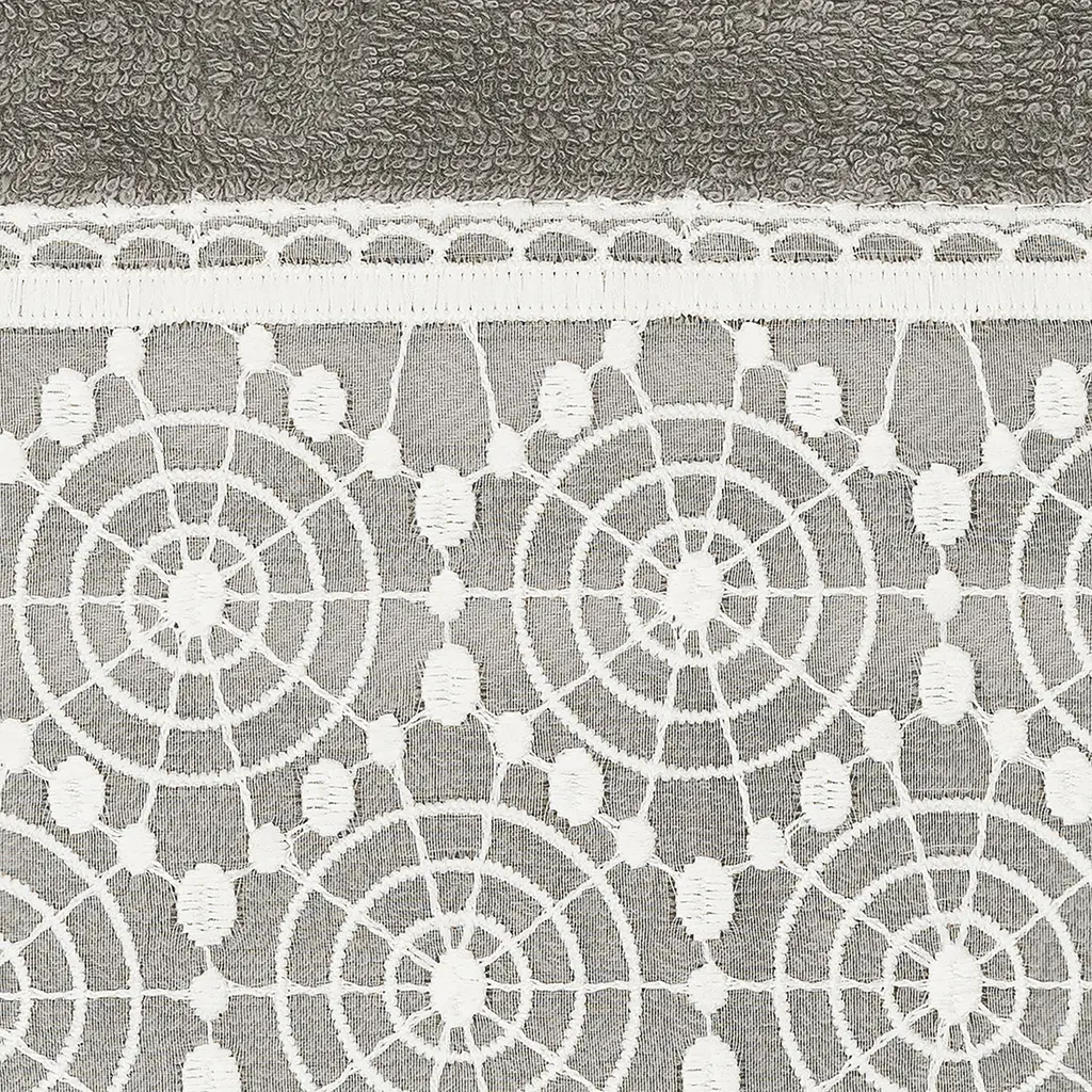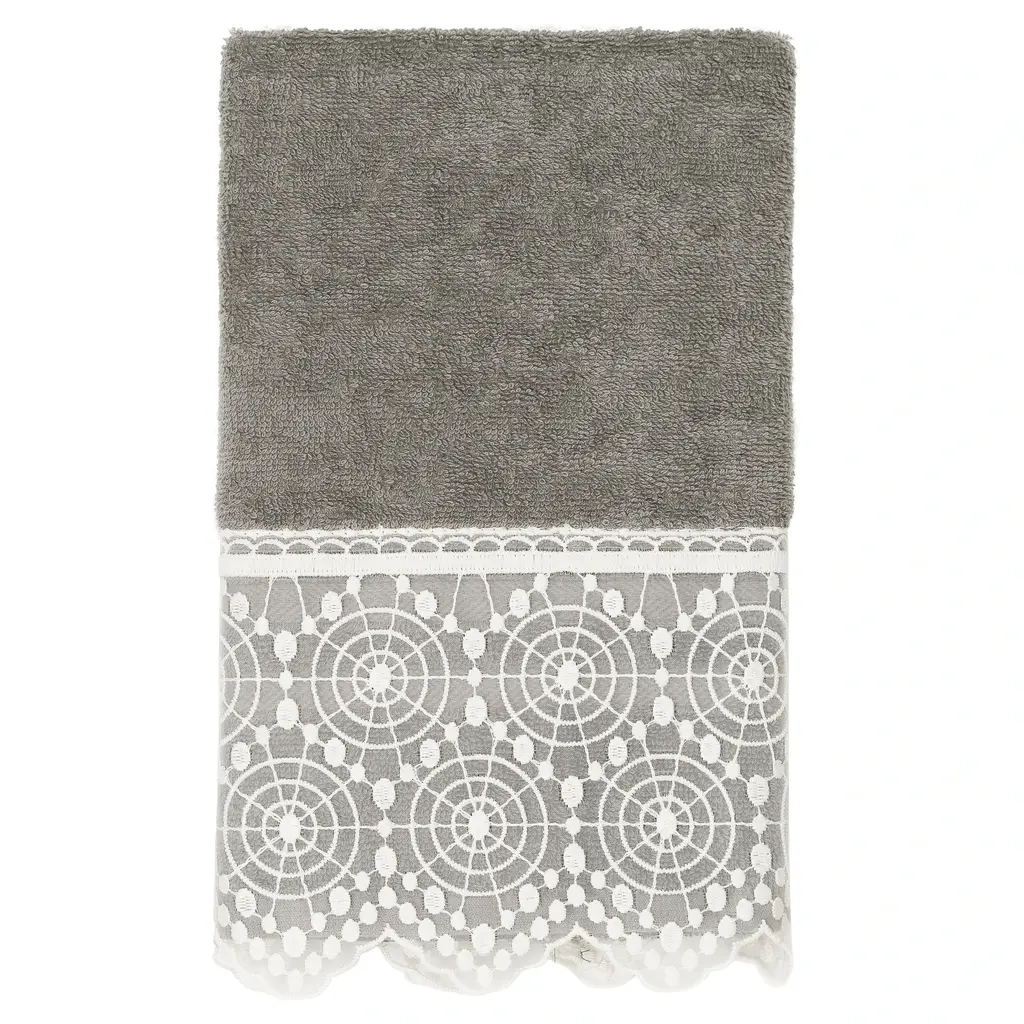 Authentic Hotel And Spa 100% Turkish Cotton Arian Cream Lace Embellished Hand Towel - Light Gray