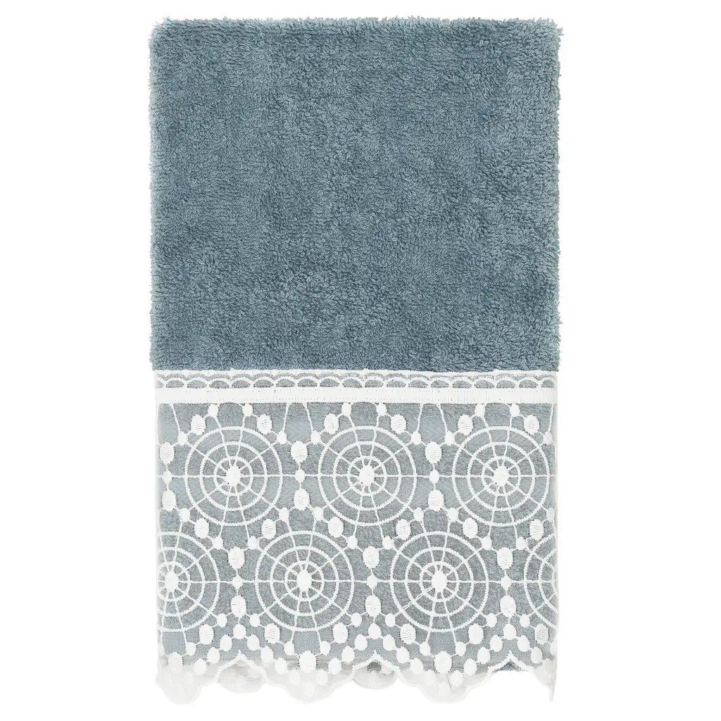 Authentic Hotel And Spa 100% Turkish Cotton Arian Cream Lace Embellished Hand Towel - Navy