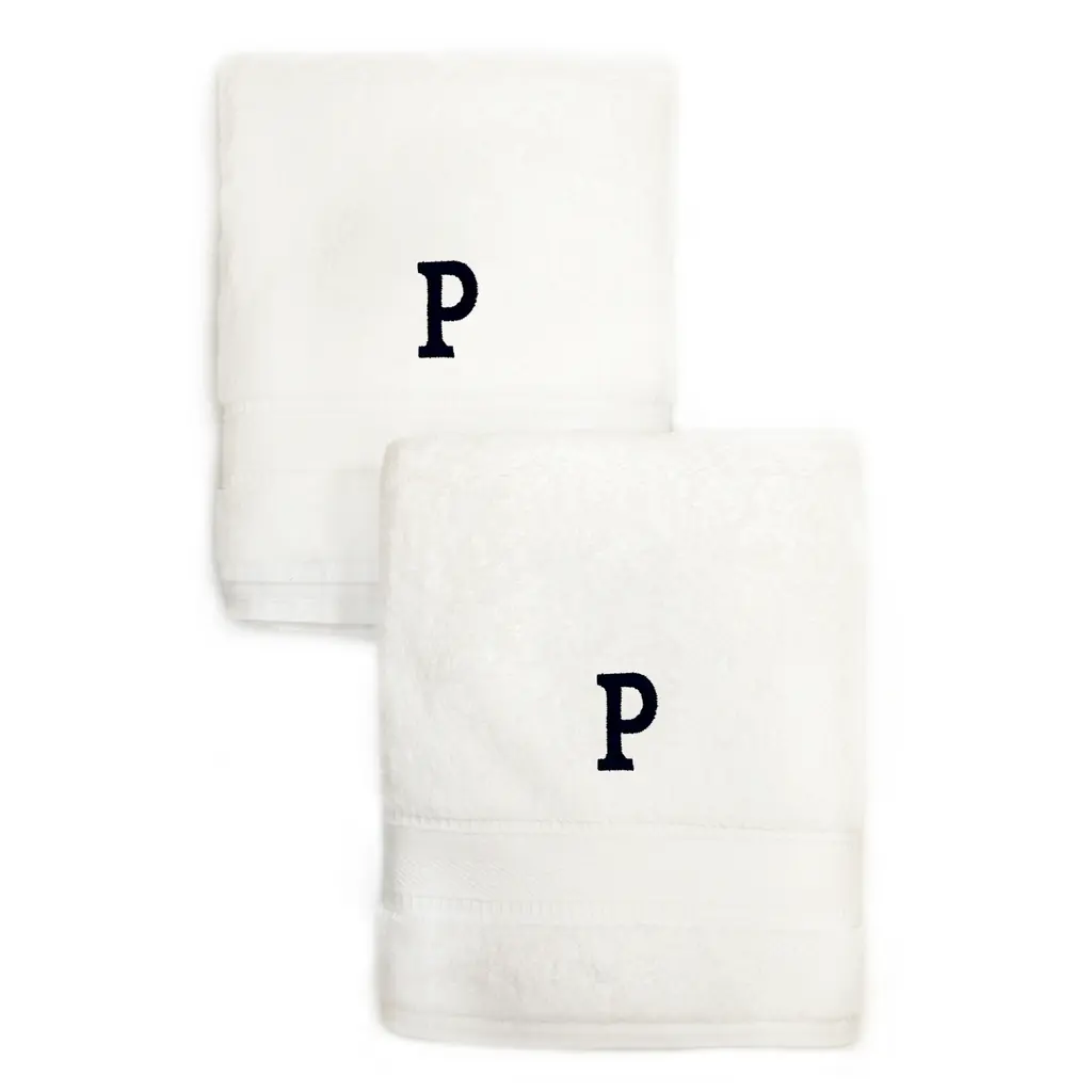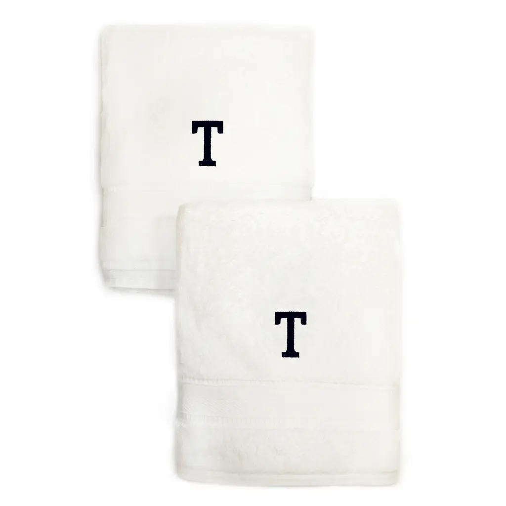 These authentic plush hotel and spa hand towels are made from high end Turkish cotton with a beautiful embroidered initial of your choice monogrammed on each towel. These 700 gram Turkish cotton bath towels are made for 5 star luxury hotels and spas and become softer and more absorbent with every wash.Soft, thick and absorbentThese long lasting towels are designed for heavy use and become softer with each washWill not pill or shedIncludes set of 2 hand towelPattern: White embroidered with the initial of your choice in black block letteringType of cotton: TurkishConstruction: Looped terryclothMaterials: 100 percent Turkish cottonCare instructions: Machine washableMade in TurkeyDimensions: 16 inches wide x 30 inches long The digital images we display have the most accurate color possible. However, due to differences in computer monitors, we cannot be responsible for variations in color between the actual product and your screen.Product Features: MonogrammedMaterial: Turkish CottonPattern: Embroidered, Solid ColorSet Include: 2 PieceCare Instruction: Machine WashTowel: Hand Towels, Guest TowelsColor: White, Black Product Features: MonogrammedMaterial: Turkish CottonPattern: Embroidered, Solid ColorSet Include: 2 PieceCare Instruction: Machine WashTowel: Hand Towels, Guest TowelsColor: White, Black