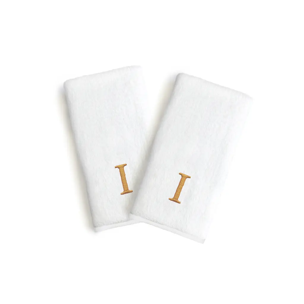 Authentic Hotel And Spa 2-Piece White Turkish Cotton Hand Towels With Gold Block Monogrammed Initial - White/d