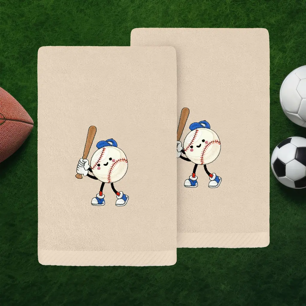 Bring a joyful summer spirit to your bath or powder room with fun embroidered hand towels. These BASEBALL PLAYER Hand Towels feature a whimsical applique embroidered character with intricate details. These soft and luxurious towels are made of 100% premium Turkish cotton for maximum absorbency and durability. The BASEBALL PLAYER Hand Towels will add a fun mood to your home decor and make a great gift!