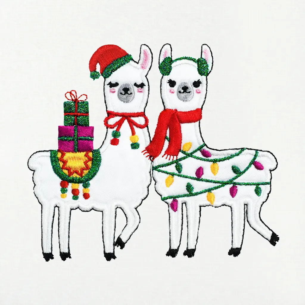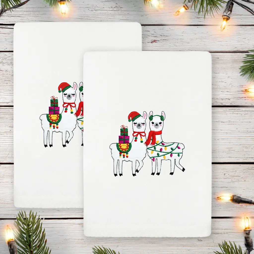 Authentic Hotel And Spa Christmas Llamas Embroidered Luxury 100% Turkish Cotton Hand Towels Set Of 2 - White