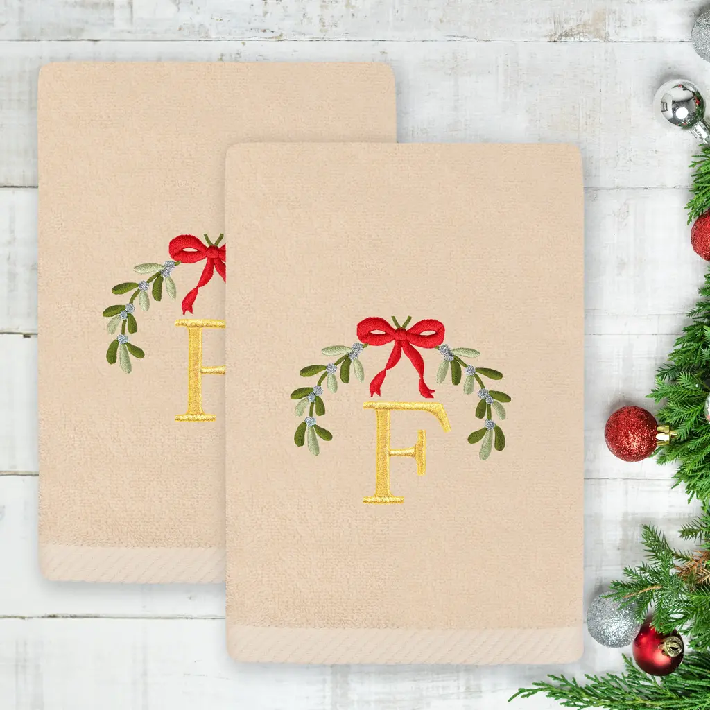 Authentic Hotel And Spa Christmas Mistletoe Monogram Embroidered Luxury 100% Turkish Cotton Hand Towels Set Of 2 - F
