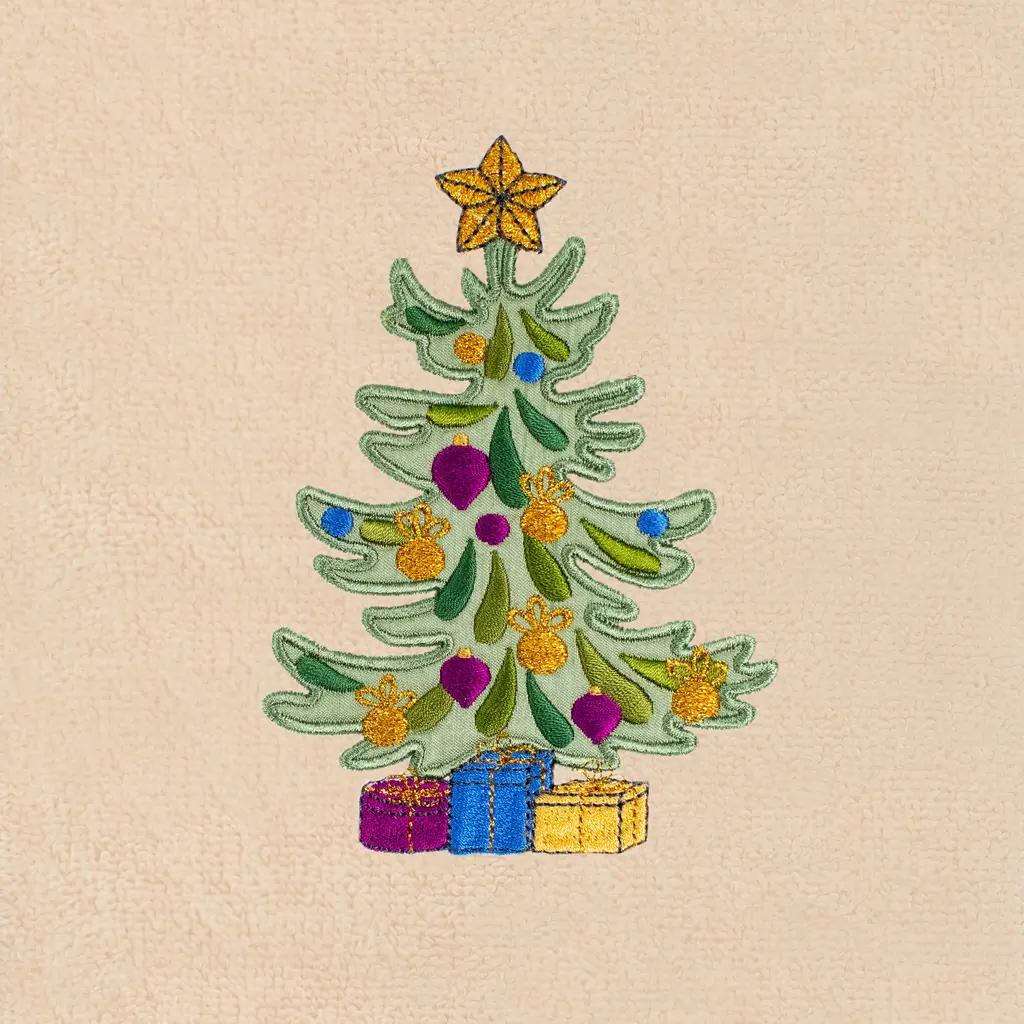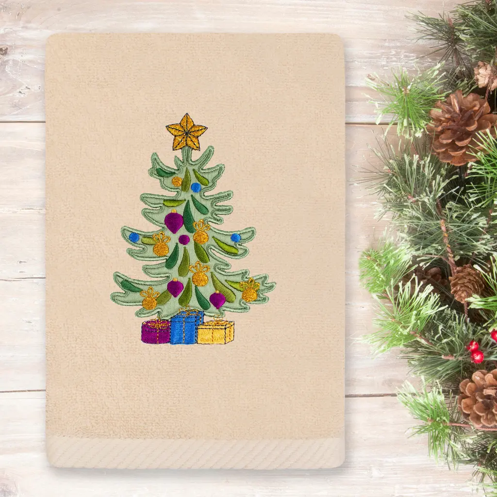 Bring a joyful Christmas spirit to your decorations with elegant embroidered hand towels by Authentic Hotel and Spa for your guest bath. These "Christmas Presents" towels feature a sparkling applique tree with presents underneath. This special & luxurious Christmas towel is manufactured with more cotton per square inch for maximum softness and absorbency. The Christmas Presents towels will add a merry mood to your festivities and make a great gift!Embroidered Christmas Tree Design100% Genuine Turkish CottonMachine wash cold, no bleach, line dry or dry cleanAvailable in color options white or sandEmbroidered Hand Towel (16" x 30")Made in TurkeyProudly Embellished in USA