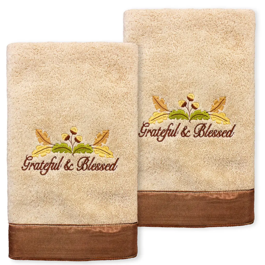 Authentic Hotel And Spa Christmas Together Again - Embroidered Luxury 100% Turkish Cotton Hand Towels (Set Of 2) - Sand