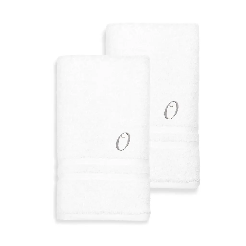 Mark your space in style with this set of monogrammed terry hand towels. This pair of towels features the elegant script initial of your choice for an upscale look in your bathroom. Soft, thick Turkish cotton construction makes the towels extra absorbent for quick and efficient hand-drying without pilling or shedding.Set includes 2 hand towelsSoft, thick and very absorbentLong-lasting towels designed for heavy useBecome softer with each washWill not pill or shedMaterials: 100 percent Turkish cottonCare instructions: Machine washableMade in TurkeyProduct Features: Monogrammed, Eco-FriendlyPattern: Solid Color, EmbroideredCare Instruction: Machine WashTowel: Hand Towels, Towel Sets, Decorative, Guest TowelsColor: White, GreyHand Towel: 16 inches wide x 30 inches long