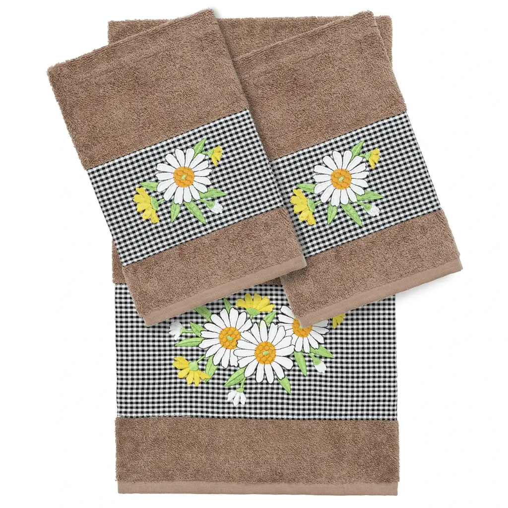 Bring a whimsical Spring spirit to your decorations with lovely, embroidered hand towels for your guest bath. These Spring Mushrooms towels feature lustrous applique mushrooms sprouting in the grass. These special & luxurious towels are manufactured with more cotton per square inch for maximum softness and absorbency. The Spring Mushrooms towels will add a charming mood to your home decor and make a great gift.Embroidered Mushrooms Design100% Genuine Turkish CottonMachine wash cold, no bleach, line dry or dry cleanAvailable in color options white or sandSet includes 2 embroidered hand towels (16" x 30")Made in TurkeyProudly Embellished in USA