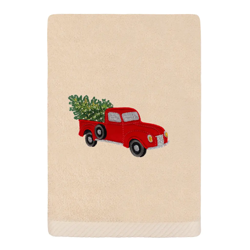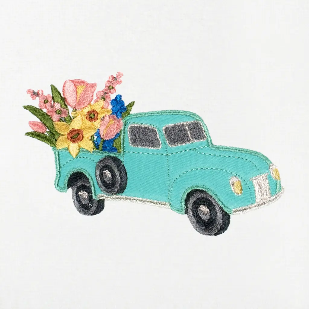 Bring a fresh Spring spirit to your decorations with intricate, embroidered hand towels for your guest bath. These Spring Truck towels feature a lustrous applique antique truck with a lush seasonal bouquet in the back. These special & luxurious towels are manufactured with more cotton per square inch for maximum softness and absorbency. The Spring Truck towels will add a nostalgic mood to your home décor and make a great gift.Embroidered Truck Design100% Genuine Turkish CottonMachine wash cold, no bleach, line dry or dry cleanAvailable in color options white or sandSet includes 2 embroidered hand towels (16" x 30")Made in TurkeyProudly Embellished in USA