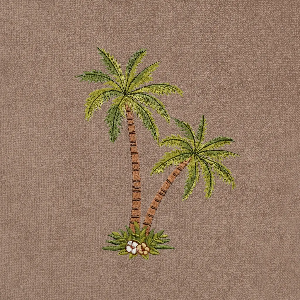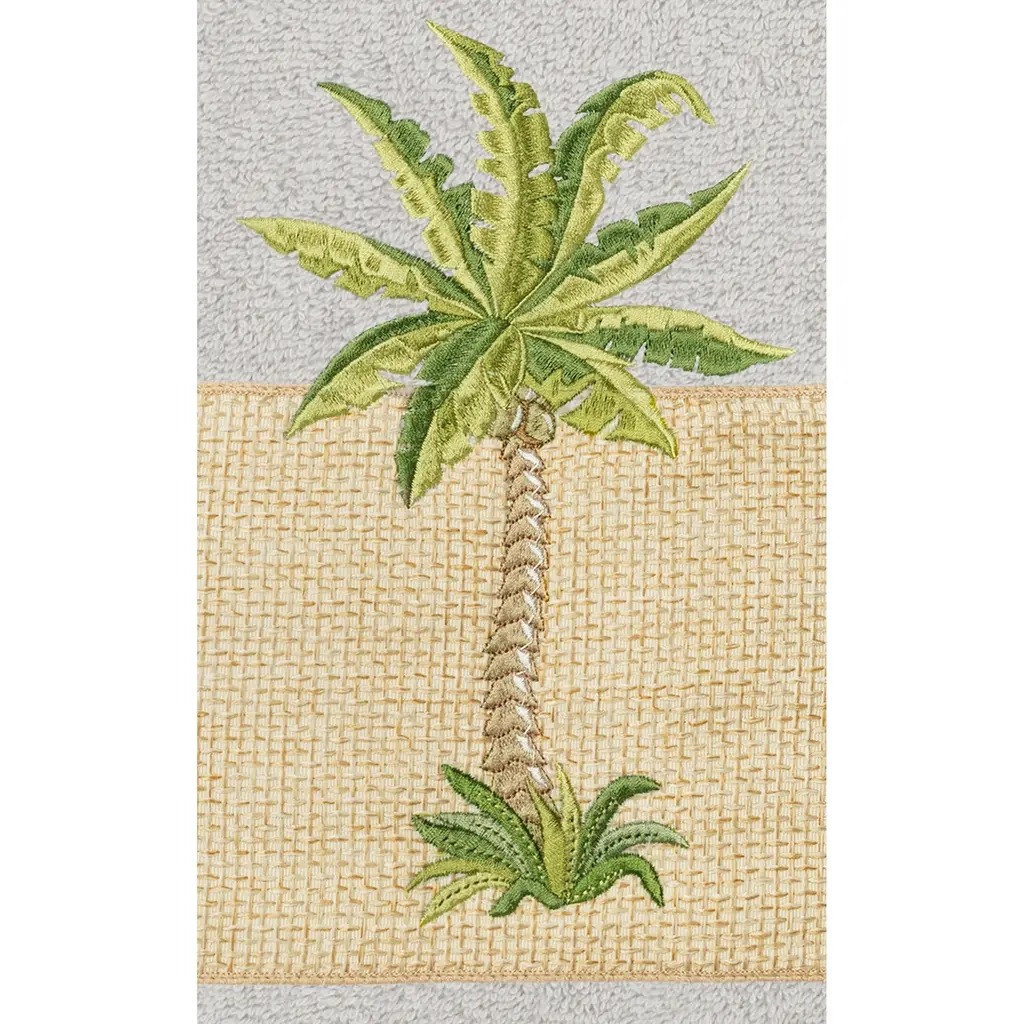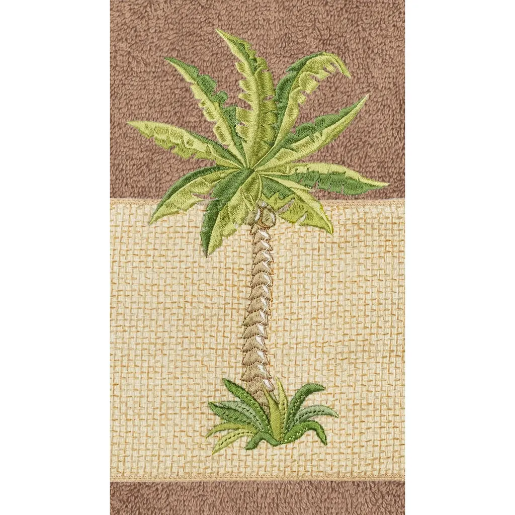 This authentic hotel and spa set of 4 hand towel are made from plush, high end Turkish cotton for supreme absorbency and durability. These beautiful cream towels are embellished with a palm tree applique and embroidery design with a textured woven border to add that special touch to your bathroom.Includes: Four (4) hand towel100-percent soft and absorbent Turkish cottonEmbellished with a design in a combination of applique and embroideryThese luxurious towel are produced in a state of the art green factory in Turkey which runs on 100-percent solar energyCare instructions: Machine wash and dryMade in TurkeyDimensions: Hand towel - 16 inches wide x 30 inches long