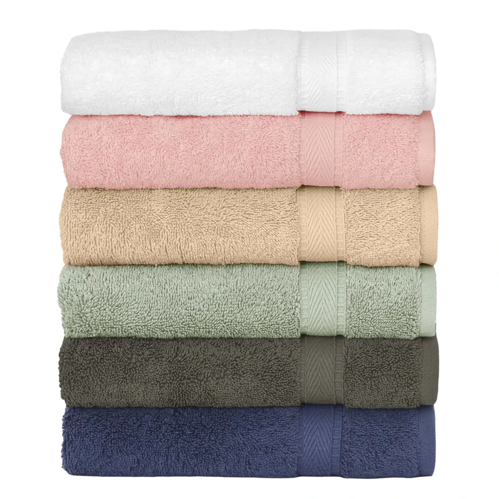 Reach for supreme softness and absorbency after washing up with this set of four hand towels. The extra-thick Turkish cotton weave adds a luxurious feel to these towels while ensuring their quality, and a natural twill dobby border adds a tonal accent for a classic, decorative look. Features:
