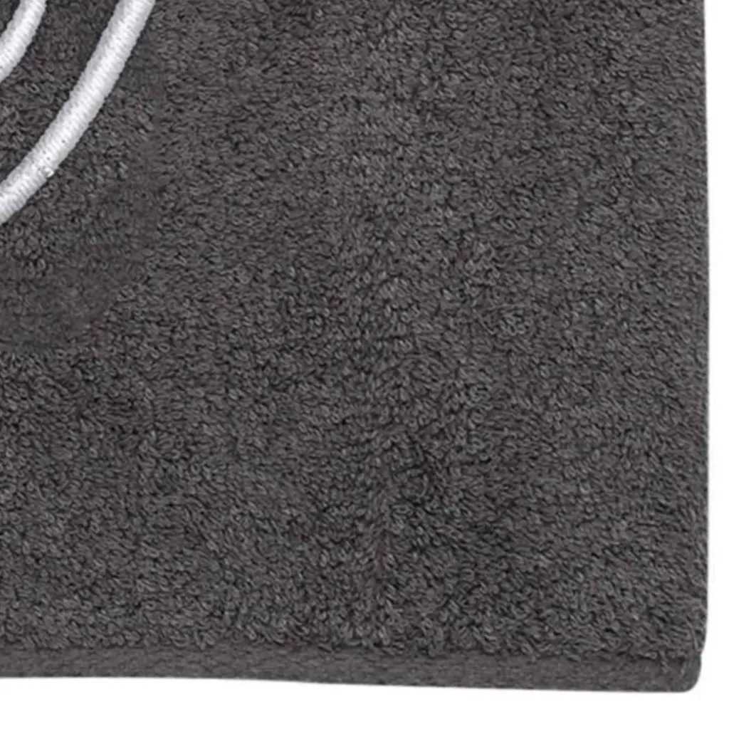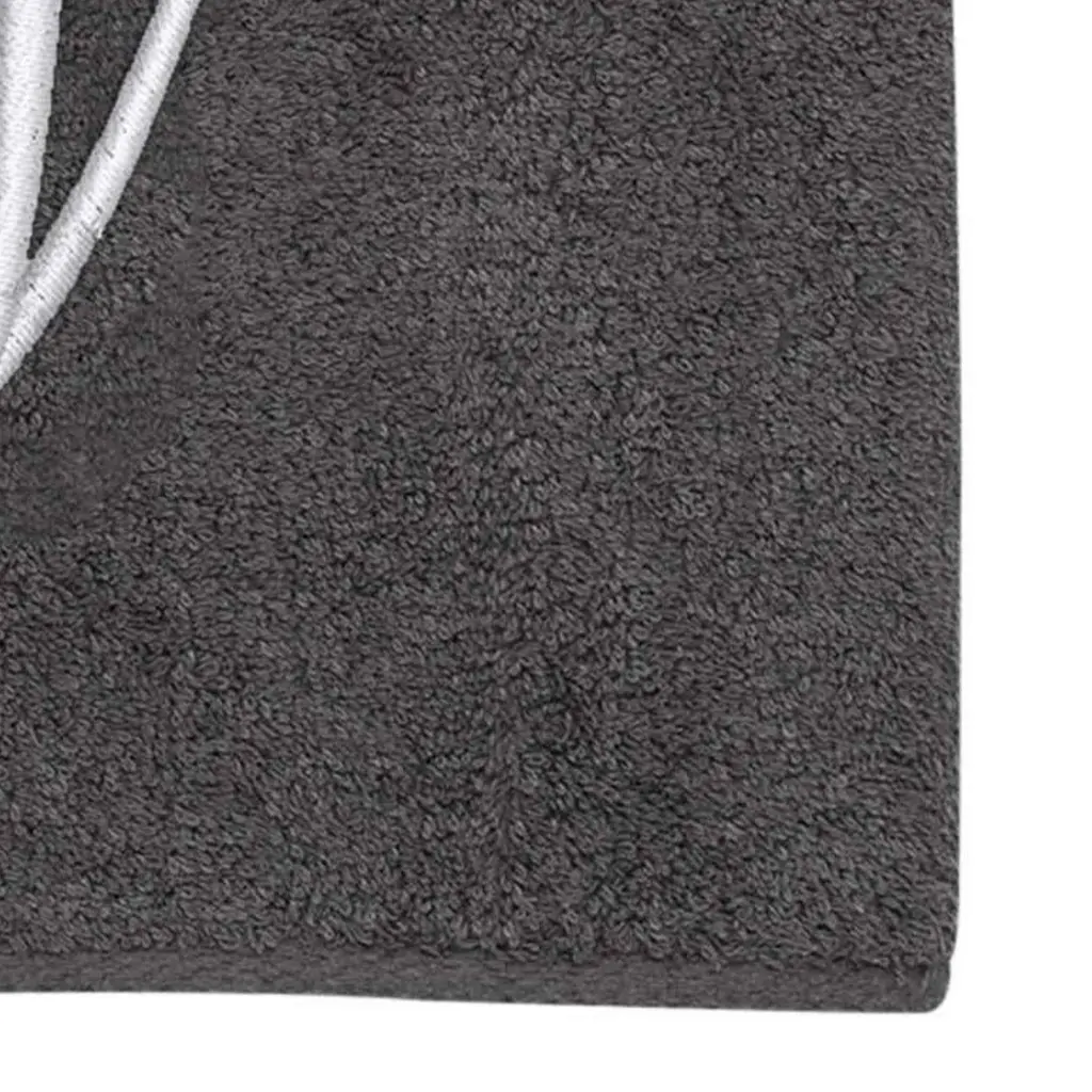 The Premier Granite/Silver Script Monogram Hand Towel features an embroidered silver script "V" on a dark grey ground. The 16" x 28" ringspun cotton terry granite towel is plush and absorbent and feels as great as it looks. Matching bath and fingertip sizes and other letters also available.
