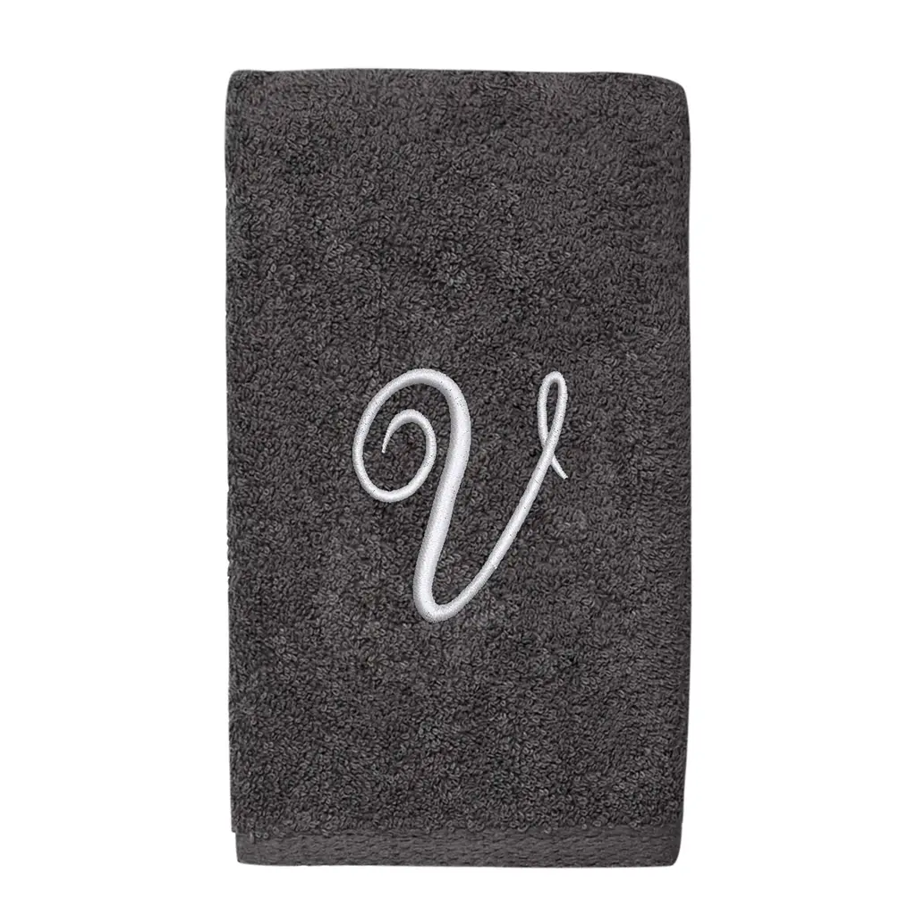 Avanti Linens Granite/silver Script Monogram Hand Towel Letter V - Hand Towel - Hand Towel - Gray