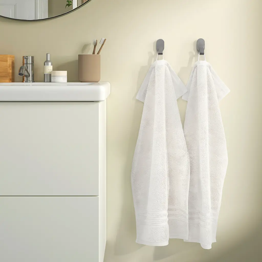 BROKGLIM Hand towel - white 16x28 ". A terry towel that is extra thick and soft and highly absorbent (weight 650 g/m²). Available in different colors which are easy to coordinate with other bath textiles and accessories. The towel will reach full absorbency after one washing.