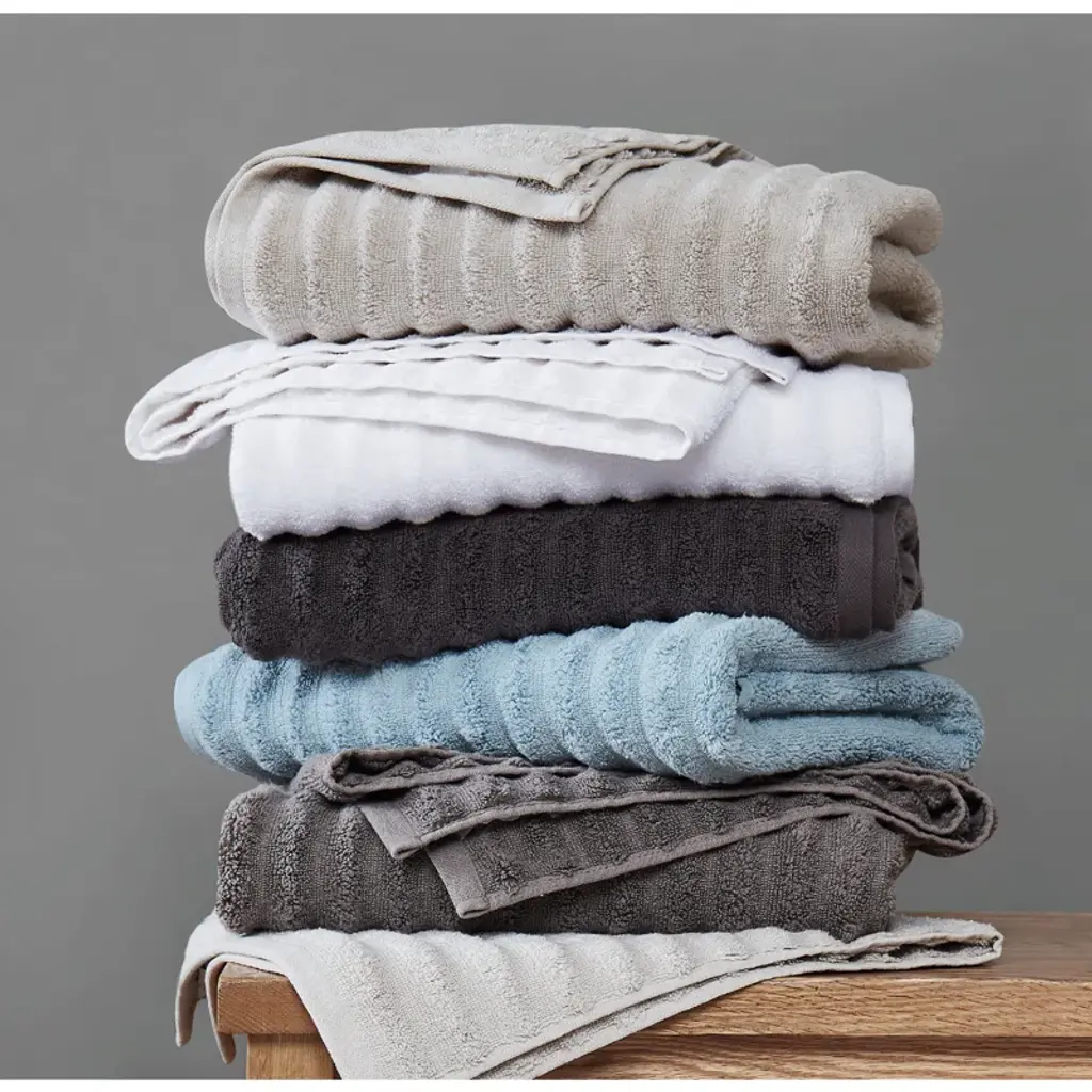 Transform your bathroom into a sanctuary of relaxation and rejuvenation with the Brooklyn Loom Textured Zero Twist 6 Piece Towel Set. Pamper yourself with the ultimate spa-like experience, courtesy of these exquisite towels designed to elevate your bathing routine to new heights of luxury. This meticulously crafted set includes two sumptuous bath towels measuring 30 by 54 inches, two plush hand towels measuring 16 by 28 inches, and two soft washcloths measuring 12 by 12 inches, providing everything you need for a spa-like experience in the comfort of your home. Featuring a sophisticated ridge pattern on the face of the towels, this set adds a touch of elegance and texture to your bathroom decor. Crafted from premium 100% cotton and utilizing zero twist yarns, these towels offer exceptional softness and absorbency, enveloping you in unparalleled comfort with every use. Brooklyn Loom is committed to delivering products of the highest quality and safety, and this towel set is no exception. OEKO-TEX Standard 100 Certification ensures that these towels meet stringent global standards for textile safety and environmental sustainability, providing you with peace of mind as you indulge in their luxurious comfort. Transform your bathroom into a sanctuary of relaxation and rejuvenation with the Brooklyn Loom Textured Zero Twist 6 Piece Towel Set. Pamper yourself with the ultimate spa-like experience, courtesy of these exquisite towels designed to elevate your bathing routine to new heights of luxury.