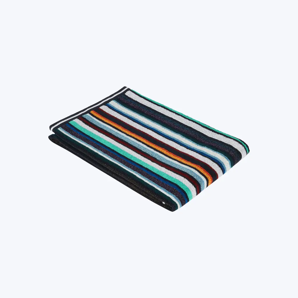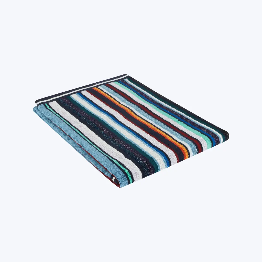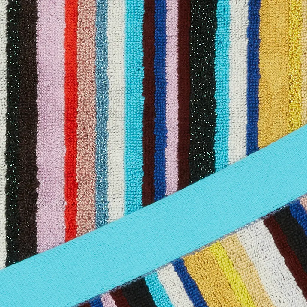 Turn your bathroom into an at-home spa oasis with this selection of Chandler Bath Towels from Missoni Home. Interwoven with a shiny metallic Lurex thread, these hand towels, bath towels, and bath sheets feature an intricate multicolored striped pattern that is sure to catch the eye with its modern style. The bath sheet's large size and fluffy soft velour allow it double as the perfect beach towel that's comfortable to lie on while the other terry side dries the skin in seconds. Missoni Home is a standout brand with a reputation for offering high-quality creations that are guaranteed to last for years to come.