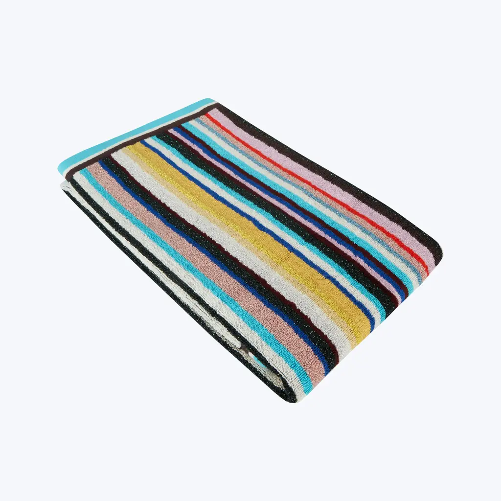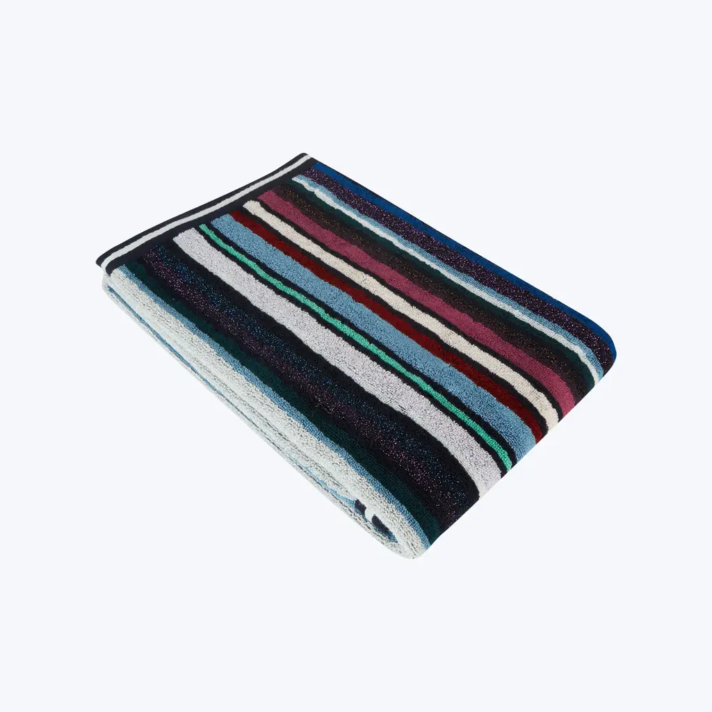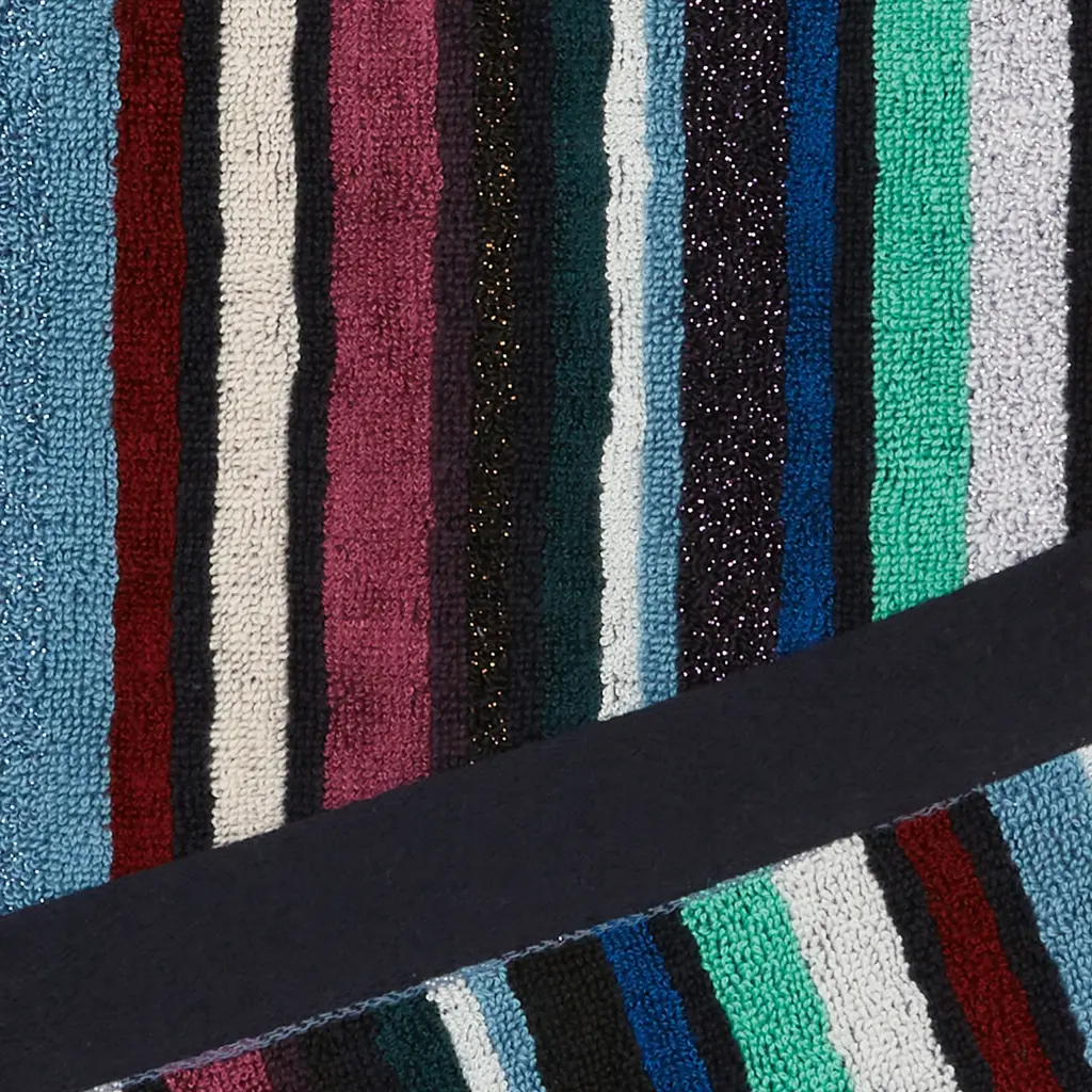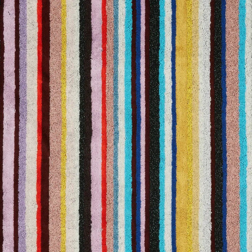 Turn your bathroom into an at-home spa oasis with this selection of Chandler Bath Towels from Missoni Home. Interwoven with a shiny metallic Lurex thread, these hand towels, bath towels, and bath sheets feature an intricate multicolored striped pattern that is sure to catch the eye with its modern style. The bath sheet's large size and fluffy soft velour allow it double as the perfect beach towel that's comfortable to lie on while the other terry side dries the skin in seconds. Missoni Home is a standout brand with a reputation for offering high-quality creations that are guaranteed to last for years to come.