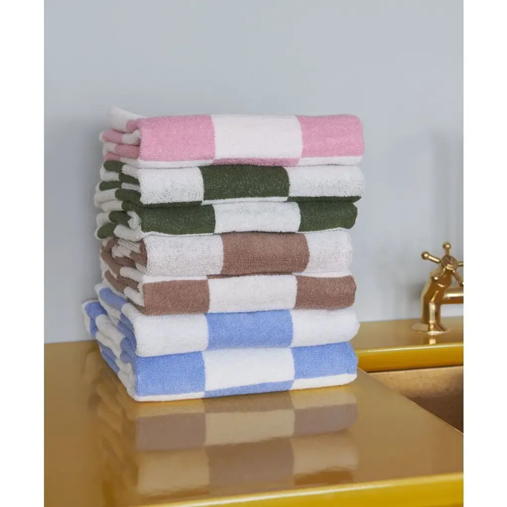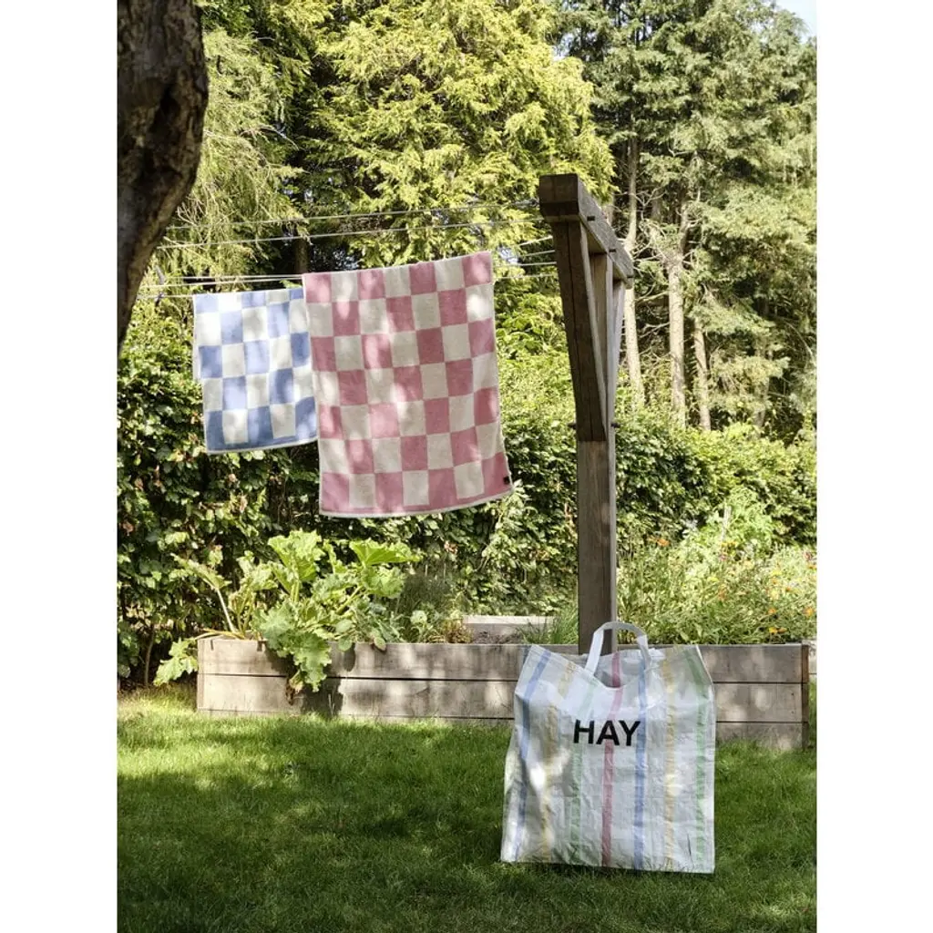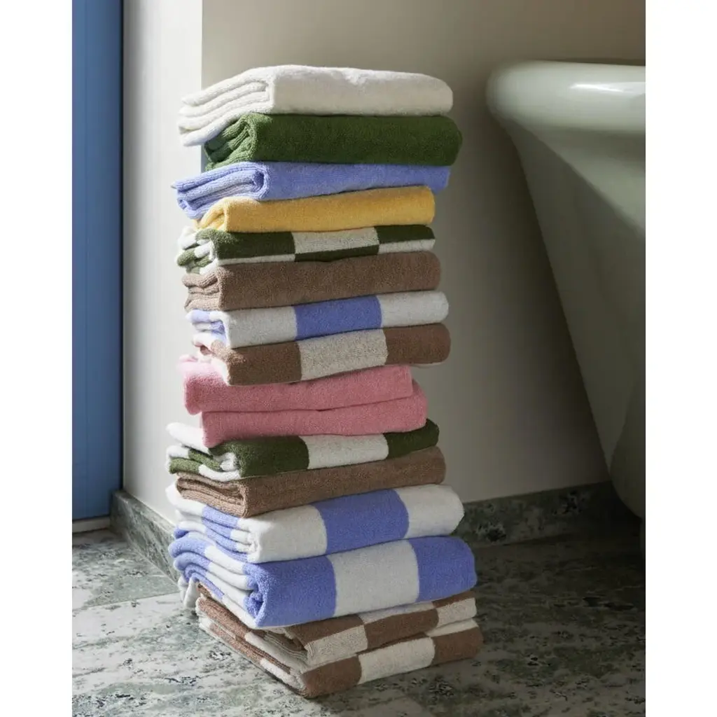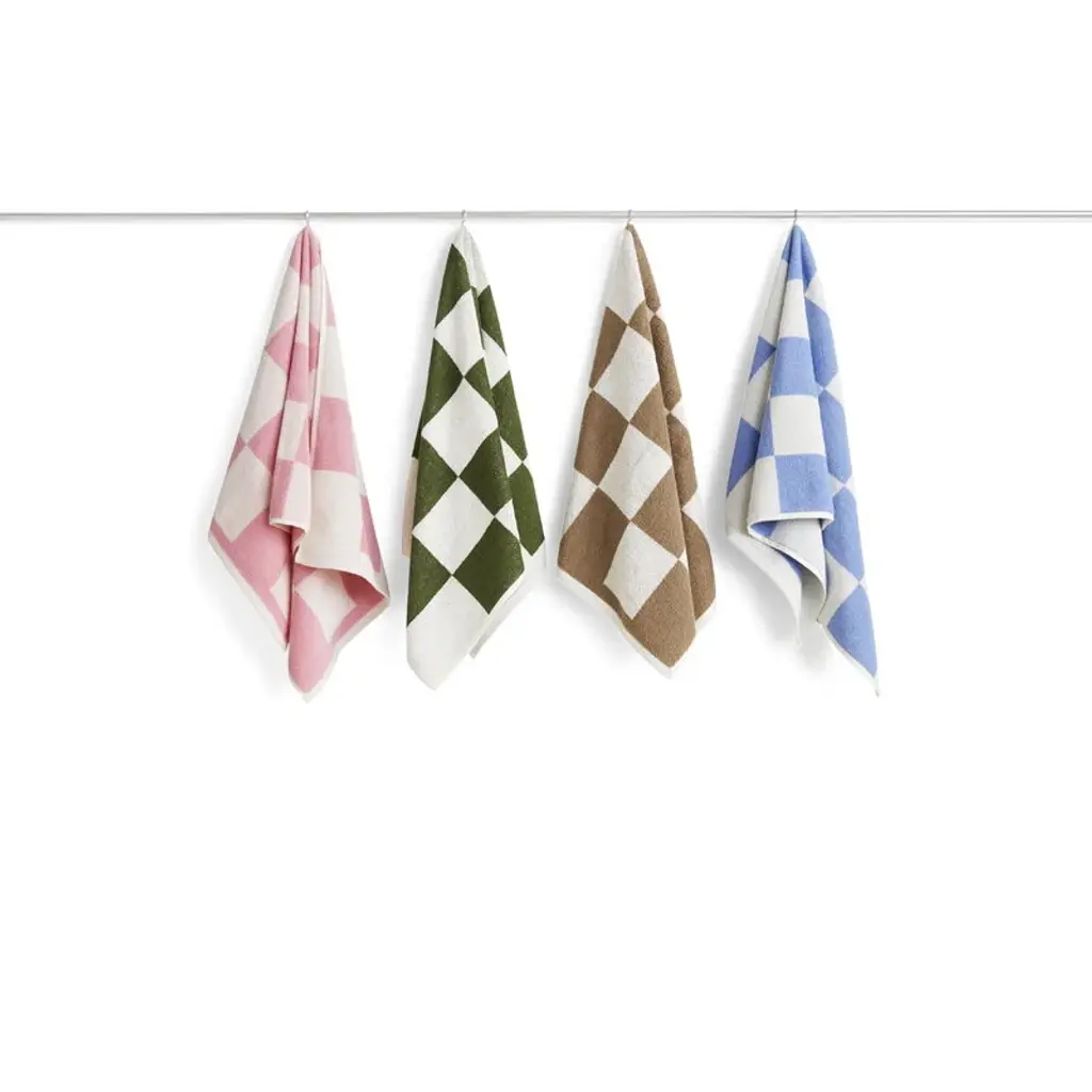 HAY’s Check hand towel is adorned with a classic checkerboard pattern that enlivens your bathroom with its lively feel and clear geometric shapes. The Check hand towel is made of certified cotton with a soft terrycloth texture that feels pleasant on the skin. The towel has a hanging loop on its long and short sides. The different colors and sizes of the Check collection are also ideal for mixing and matching.