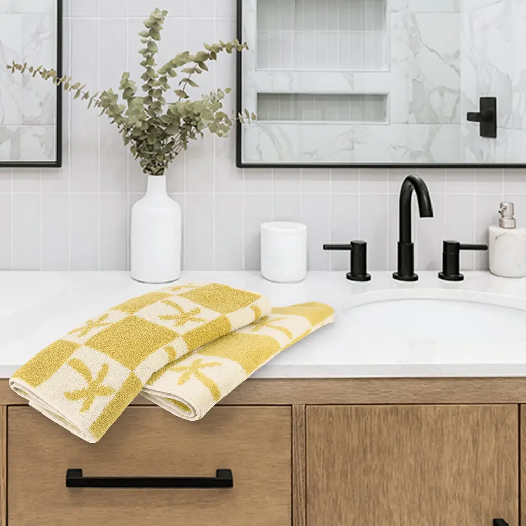Cute Design: The color block plaid patterns on the hand towels will infuse a sense of joy into your day, adding a charming touch to both your bathroom and kitchen spaces. The lively hues and delightful prints not only uplift the ambiance but also bring a cheerful and inviting atmosphere to these areas, creating a visually pleasing environment that radiates positivity and warmth.Soft and Absorbent: Made of cotton fabric, these towels offer a luxuriously soft touch and excellent absorbency. Gives the body a gentle and delicate touch while absorbing the moisture.Versatile Use: Suitable for bathroom, kitchen, gym, spa, hotel, or fitness etc. The cute hand towel set can be used for drying your hands, wiping your face, taking a bath, or cleaning up spills.Ideal Gifts: Whether it's a housewarming gift, a birthday surprise for your girlfriend or wife, or a thoughtful gesture for a loved one, these hand towels are sure to be appreciated for their functionality, and stylish appeal, will be a versatile and thoughtful gift.Care Instructions: Machine wash on a gentle cycle. Tumble dry on low heat and refrain from using bleach.