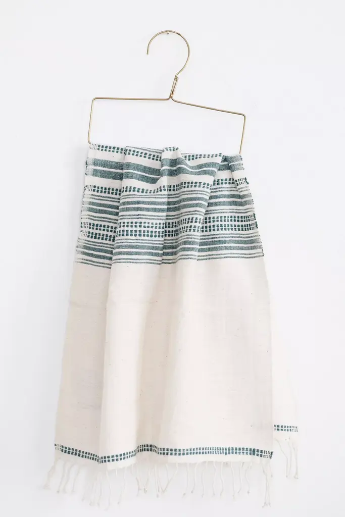 Handwoven in Ethiopia using time-honored weaving traditions and AZO-free dyes. All of the dyeing is done in small batches at the workshop as the artisans work to rekindle the tradition of natural dye in Ethiopia. These towels are perfect in the bathroom and kitchen. Absorbent and quick drying cotton. Connected Goods works with artisans around the globe to bring their craft and age-old techniques into the modern marketplace. This work brings fair wages and ethical working conditions into rural communities where employment opportunity is minimal. Handwoven with 100% cotton Machine wash cool, dry on low Sold individually Imported Dimensions Approximately 20” wide, 28” long Please note handmade products will have slight variations, this is a natural occurrence in handcrafted goods.