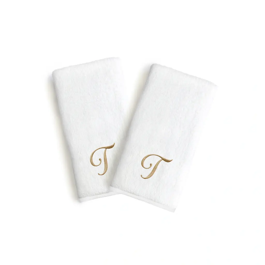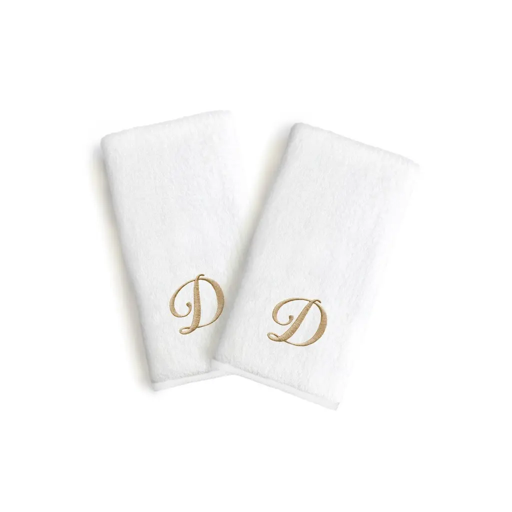 Copper Grove Belgrad 2-Piece White Turkish Cotton Hand Towels With Gold Script Monogrammed Initial - White/b