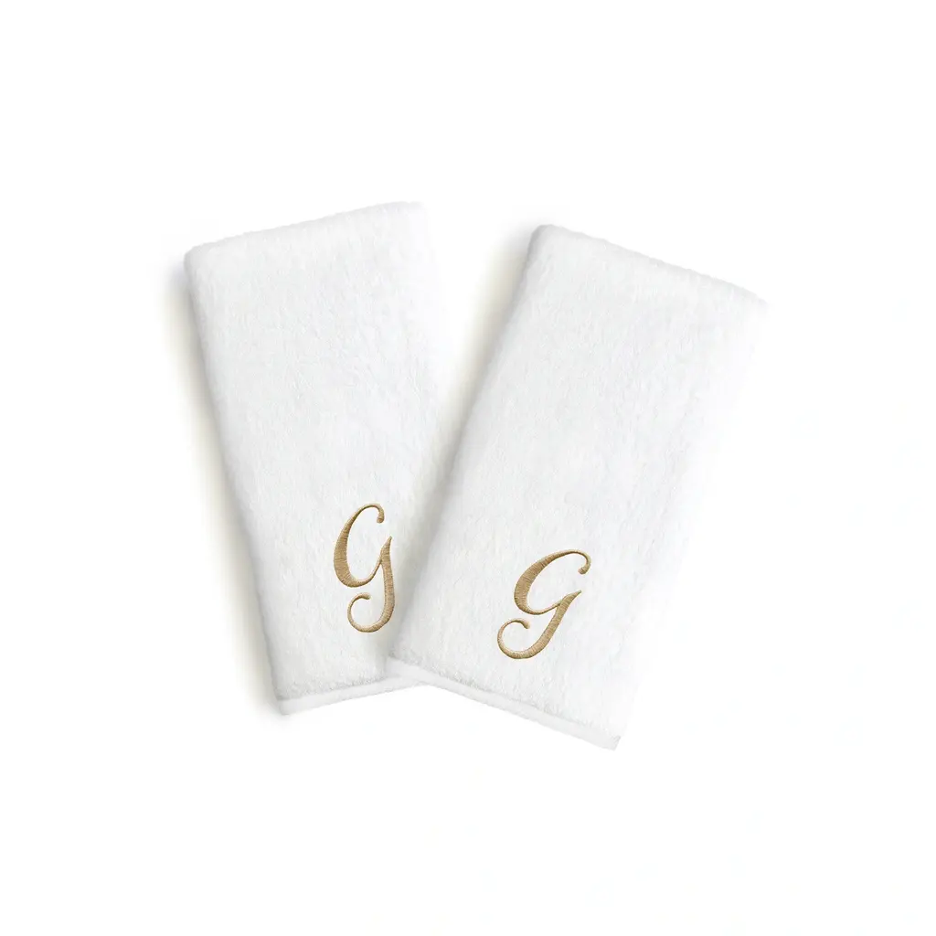 Copper Grove Belgrad 2-Piece White Turkish Cotton Hand Towels With Gold Script Monogrammed Initial - White/f