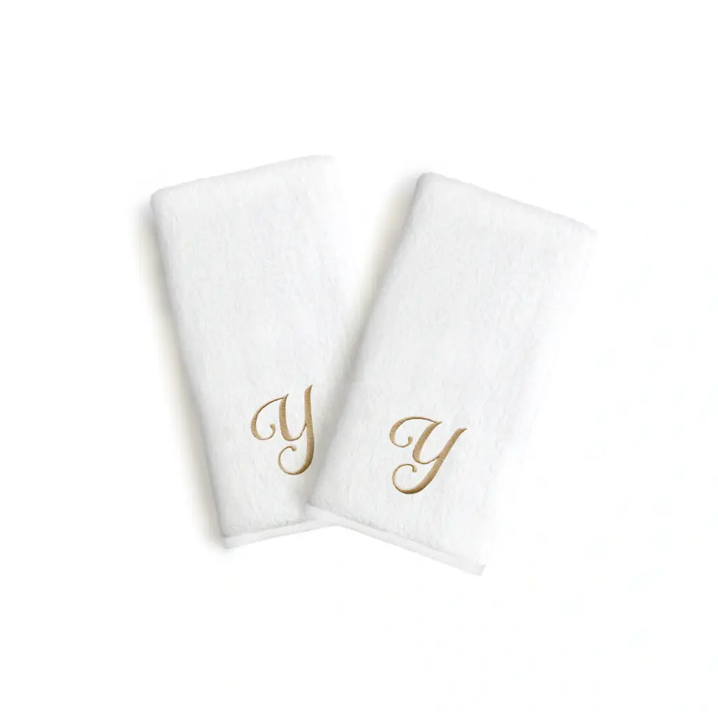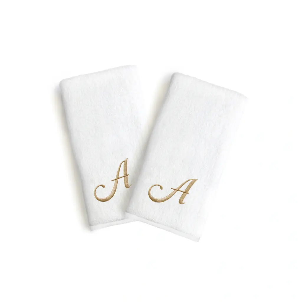 Copper Grove Belgrad 2-Piece White Turkish Cotton Hand Towels With Gold Script Monogrammed Initial - White/i