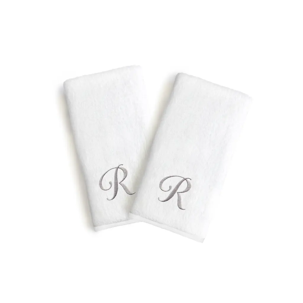 Copper Grove Belgrad 2-Piece White Turkish Cotton Hand Towels With Grey Script Monogrammed Initial - White/d