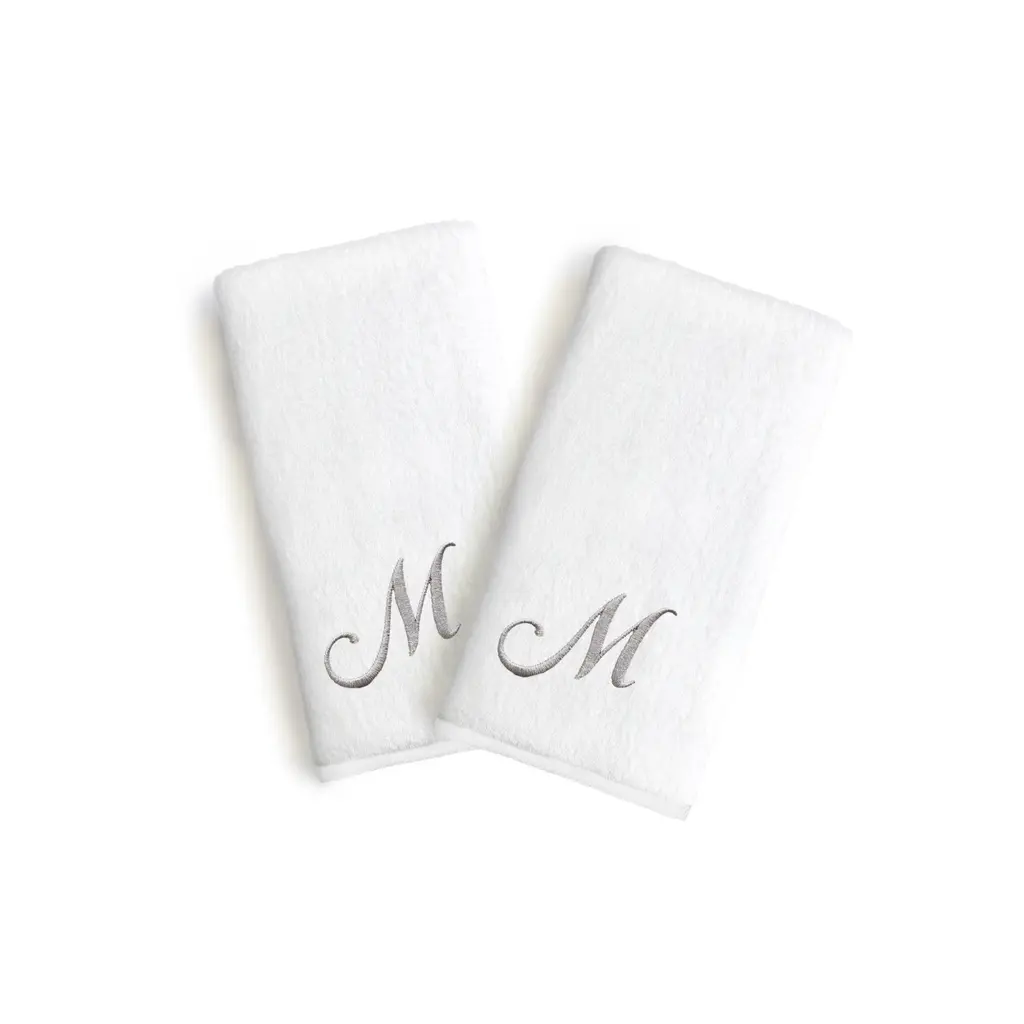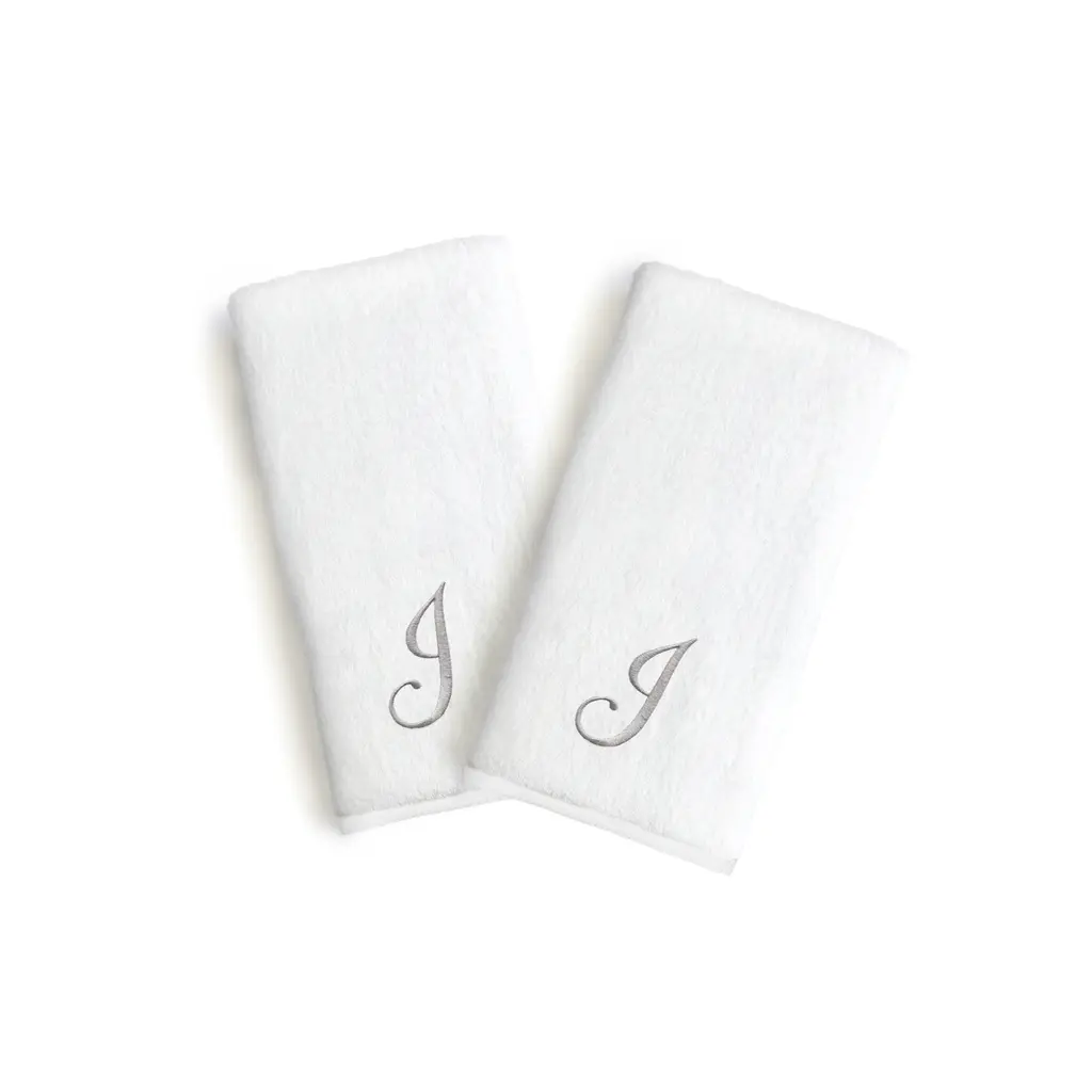 Copper Grove Belgrad 2-Piece White Turkish Cotton Hand Towels With Grey Script Monogrammed Initial - White/h
