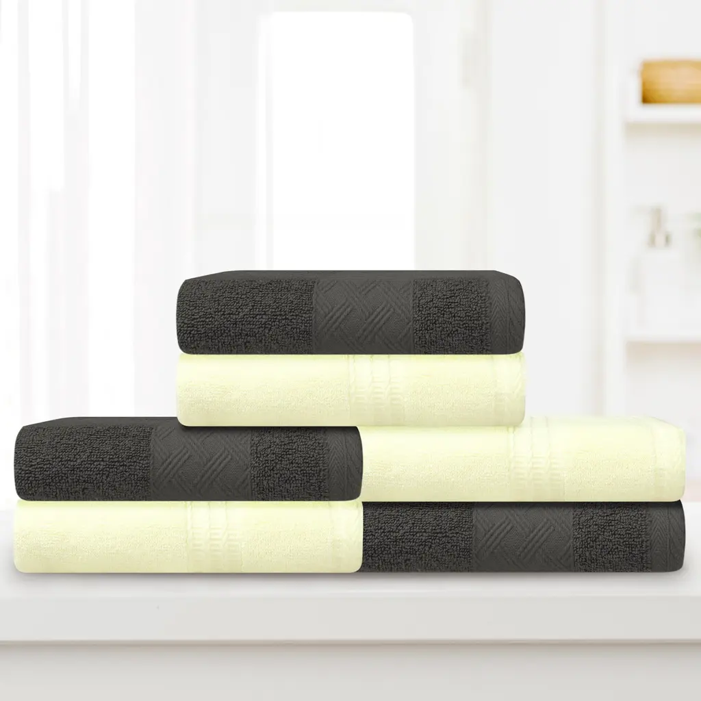 Cotton Hand Towels Set, Highly Absorbent And Quick Drying, Multi-Purpose Towel For Camping, Hotel, Spa 14" X 30" Yellow - Dark Grey - 2 Pack