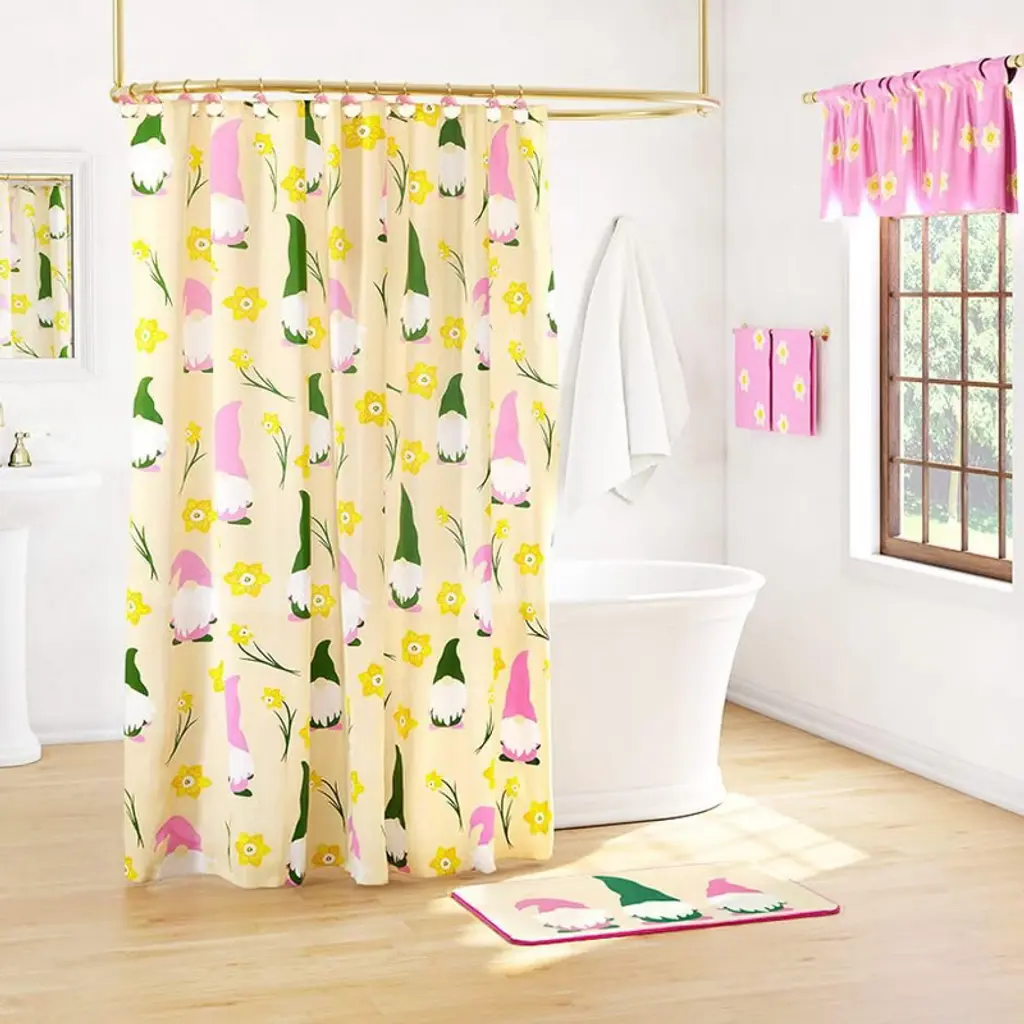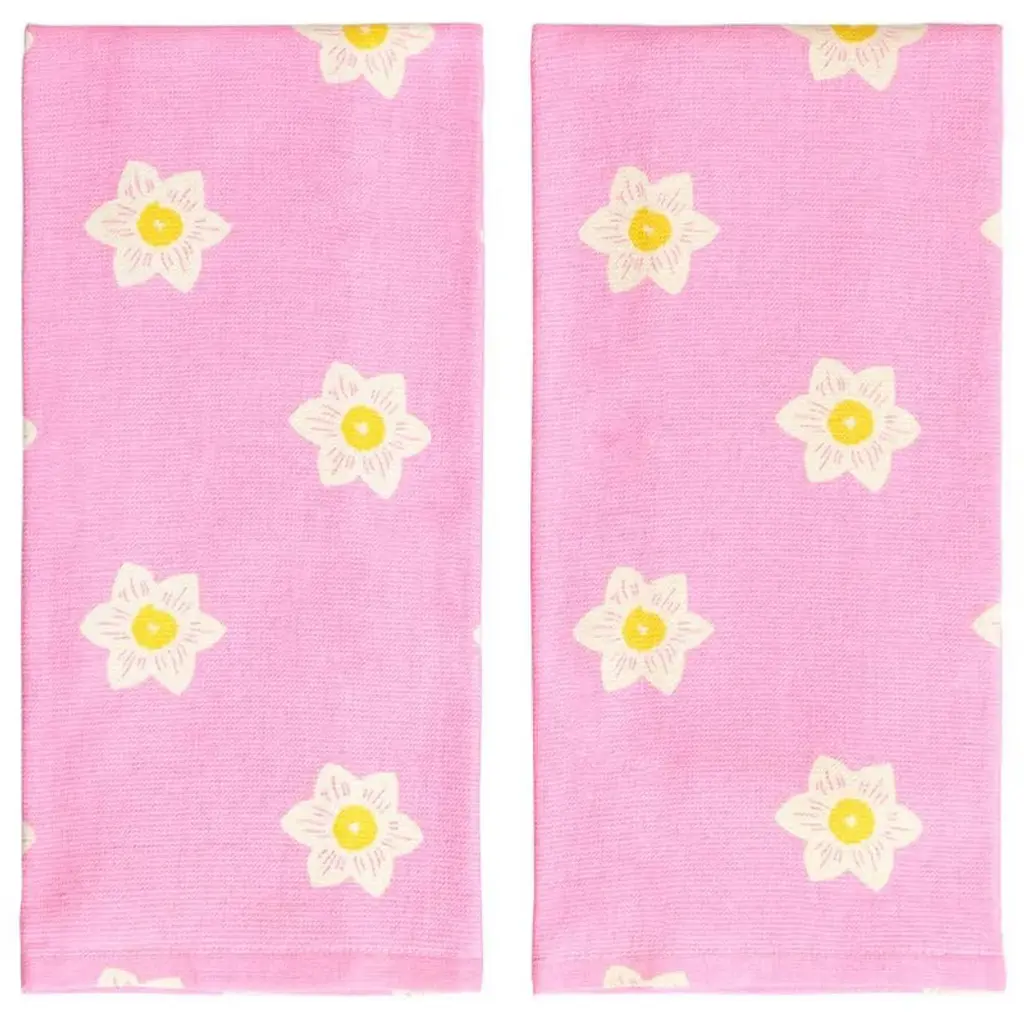 Brighten up your bathroom with the Daffodil Gnomes Set of 2 Hand Towels. This set combines cheerful yellow and pink spring flowers, each towel featuring beautifully embroidered blooms that add a lively touch to your décor. Dimensions: 16" W x 25" L each Material: 100% Cotton Care Instructions: Machine washable, tumble dry