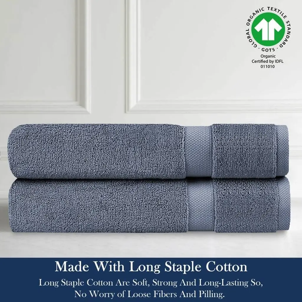 Delara Organic Cotton Luxuriously Plush Hand Towel Pack Of 2 | Gots & Oeko-Tex Certified | 650 Gsm Long Staple - Mineral Blue