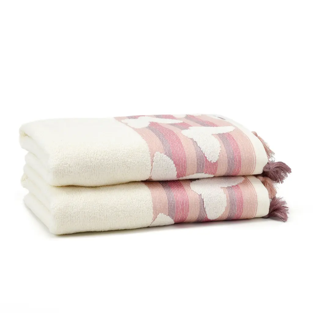 East'n Blue Butterfly Turkish Cotton Hand Towel (Pack Of 2) - Peach