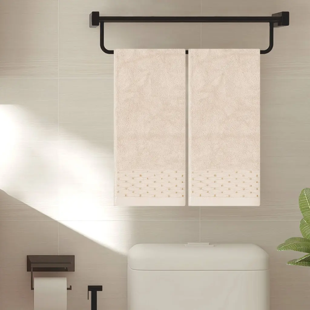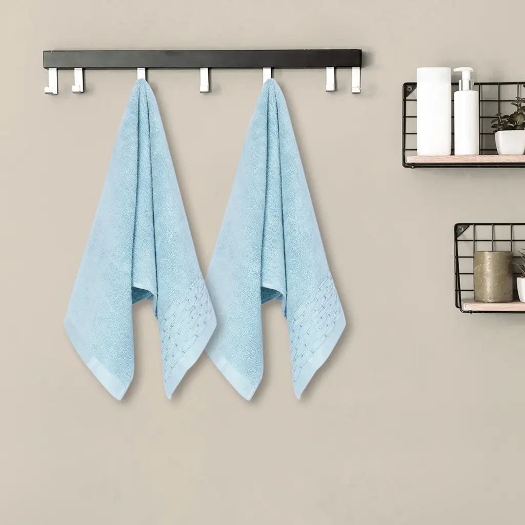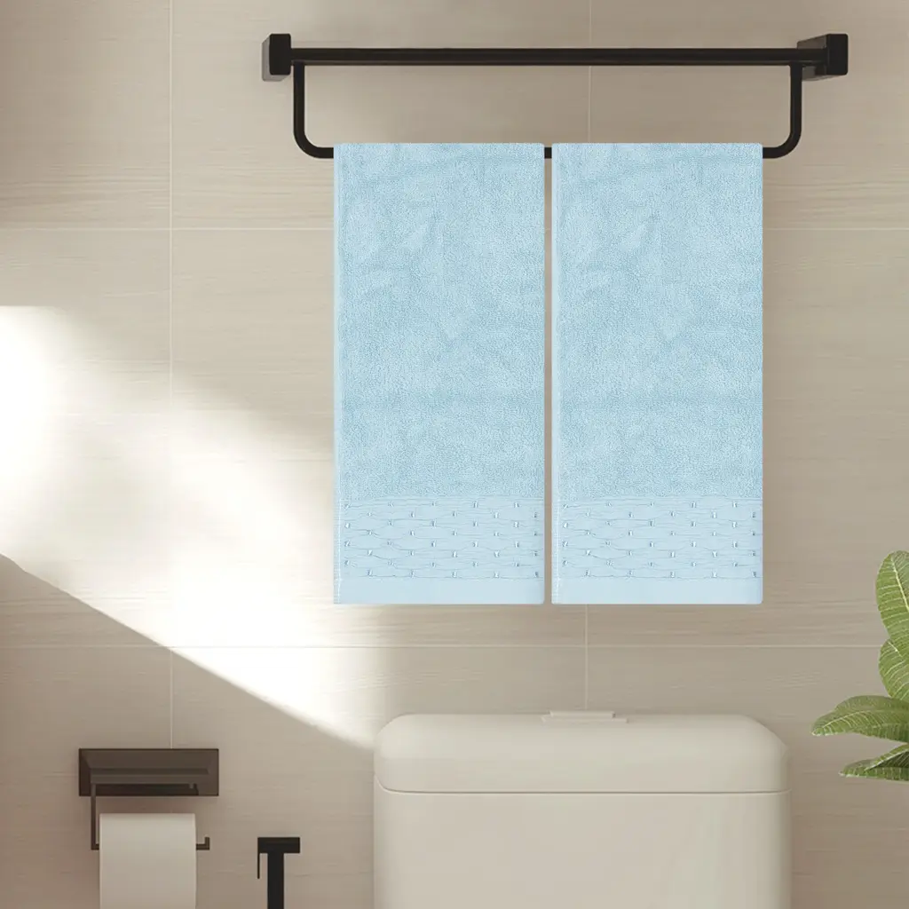 Embroidery Pattern Hand Towels Set, Cotton Comfortable Hand Towels For Bathroom, Kitchen 14" X 30" Blue - Light Brown - 2 Pack