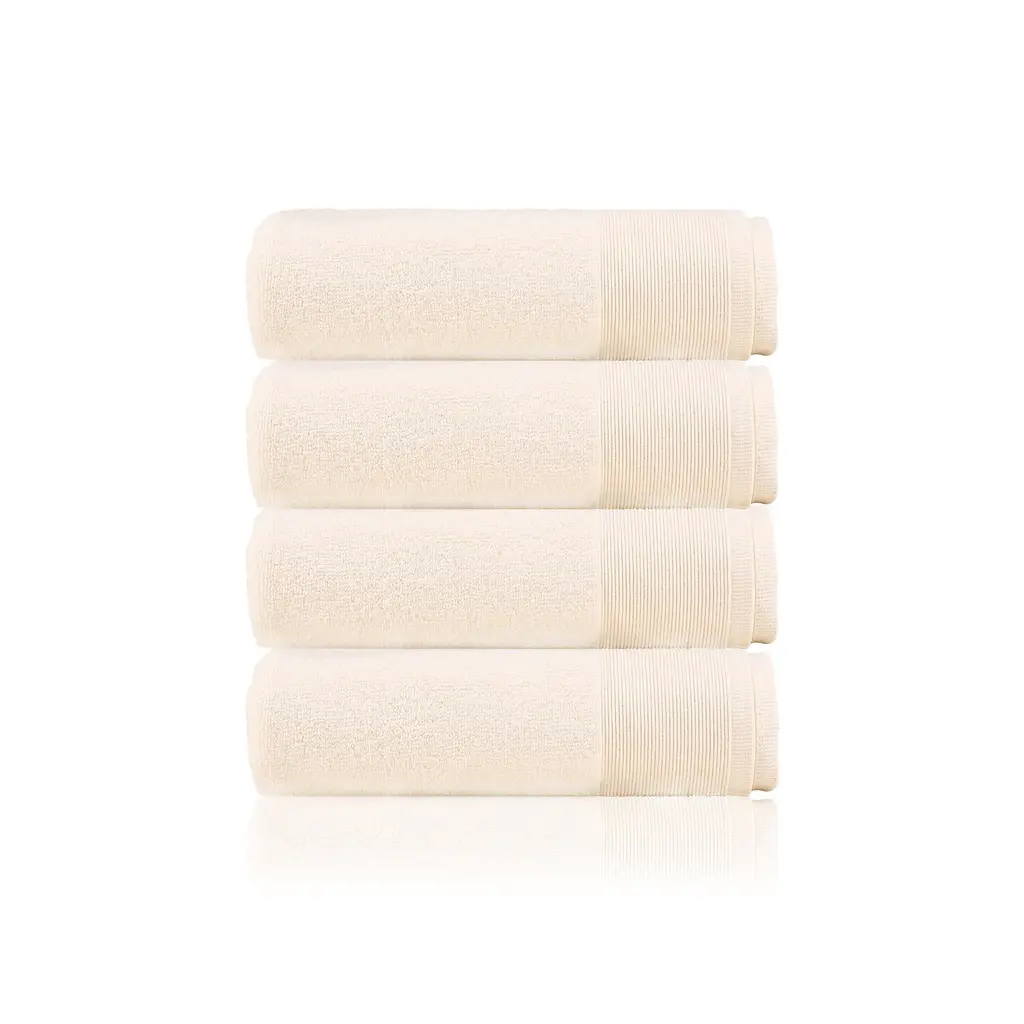 Set includes 4 large hand towels that measure 16" X 28" High-Quality Construction: Made using100% Zero Twist Cotton, zero-twist construction uses longer and stronger cotton fibers, allowing them to be looped through the towel base instead of twisted out from the towel. Loops, instead of twists, give the towel three substantial benefits: Absorbency, Softness, Durability. The Hand Towel Set is extremely versatile and can be used in various settings such as a bathroom, Gym, Kitchen, and can be used as a washcloth for cleaning surfaces