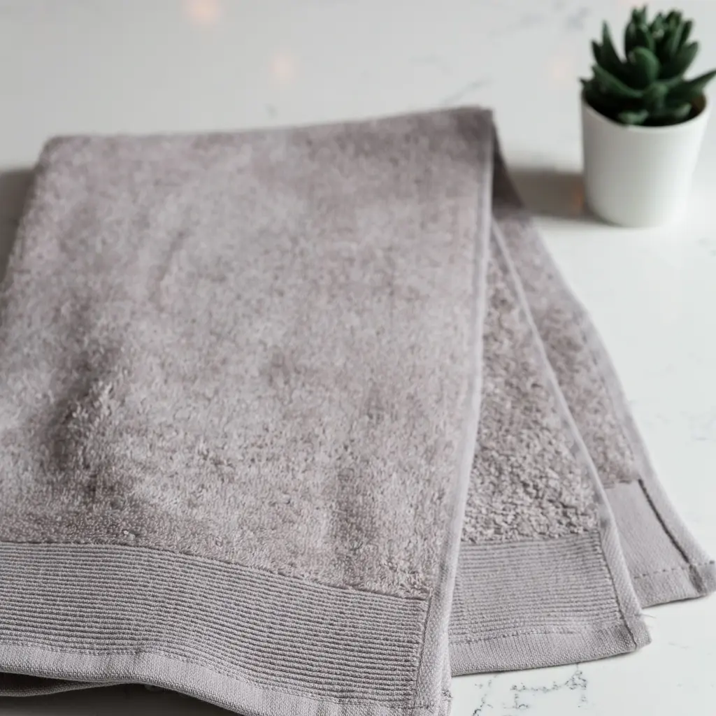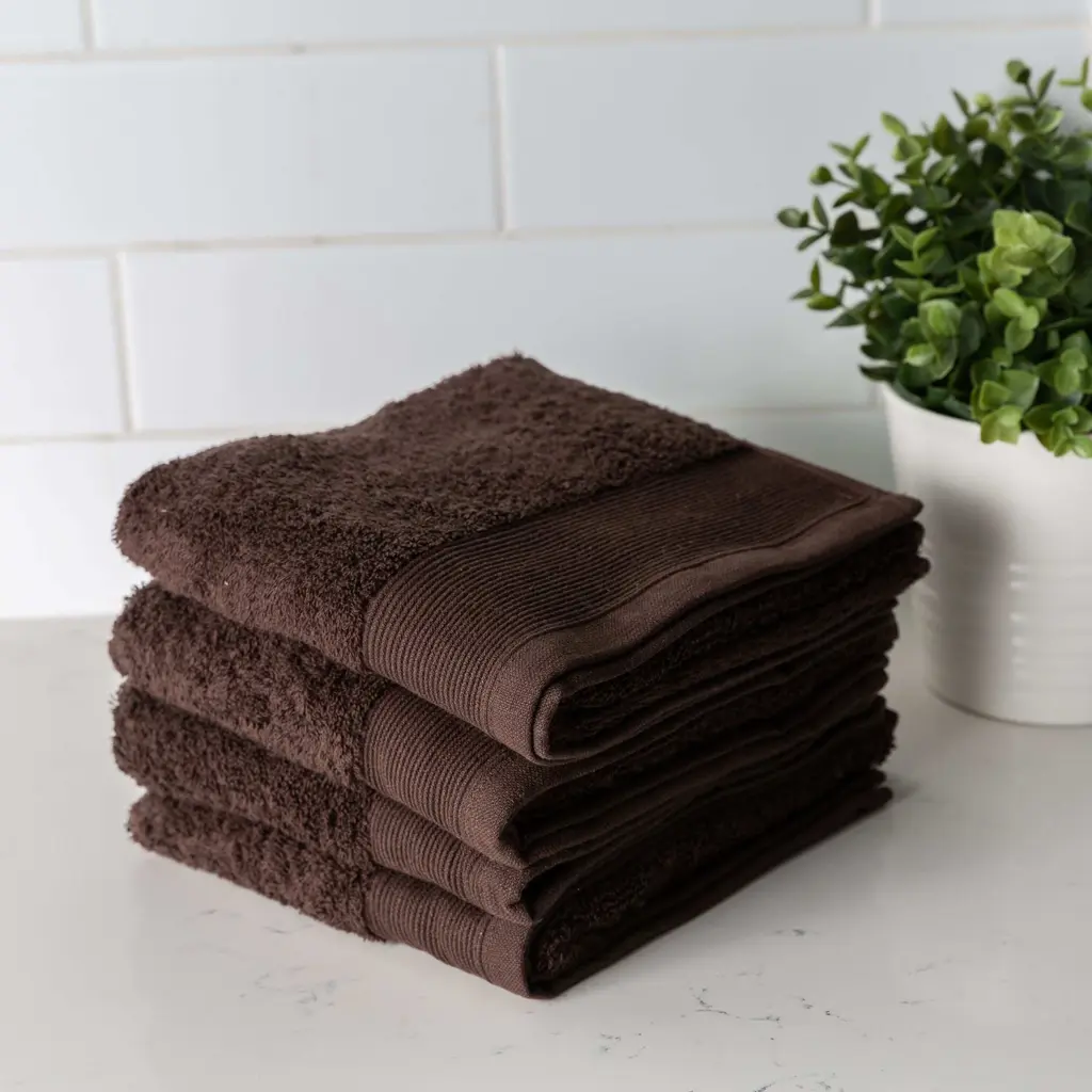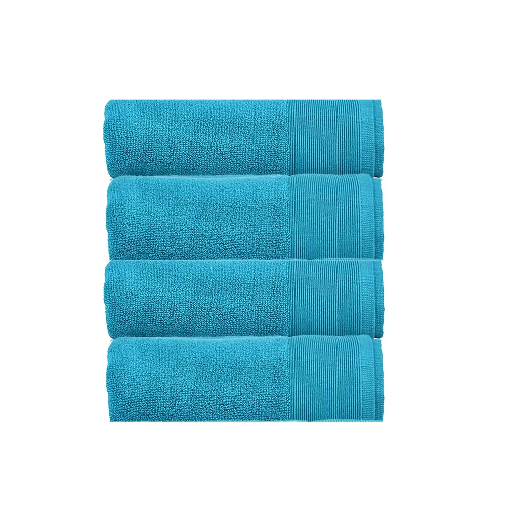Set includes 4 large hand towels that measure 16" X 28" High-Quality Construction: Made using100% Zero Twist Cotton, zero-twist construction uses longer and stronger cotton fibers, allowing them to be looped through the towel base instead of twisted out from the towel. Loops, instead of twists, give the towel three substantial benefits: Absorbency, Softness, Durability. The Hand Towel Set is extremely versatile and can be used in various settings such as a bathroom, Gym, Kitchen, and can be used as a washcloth for cleaning surfaces