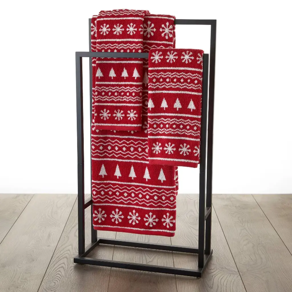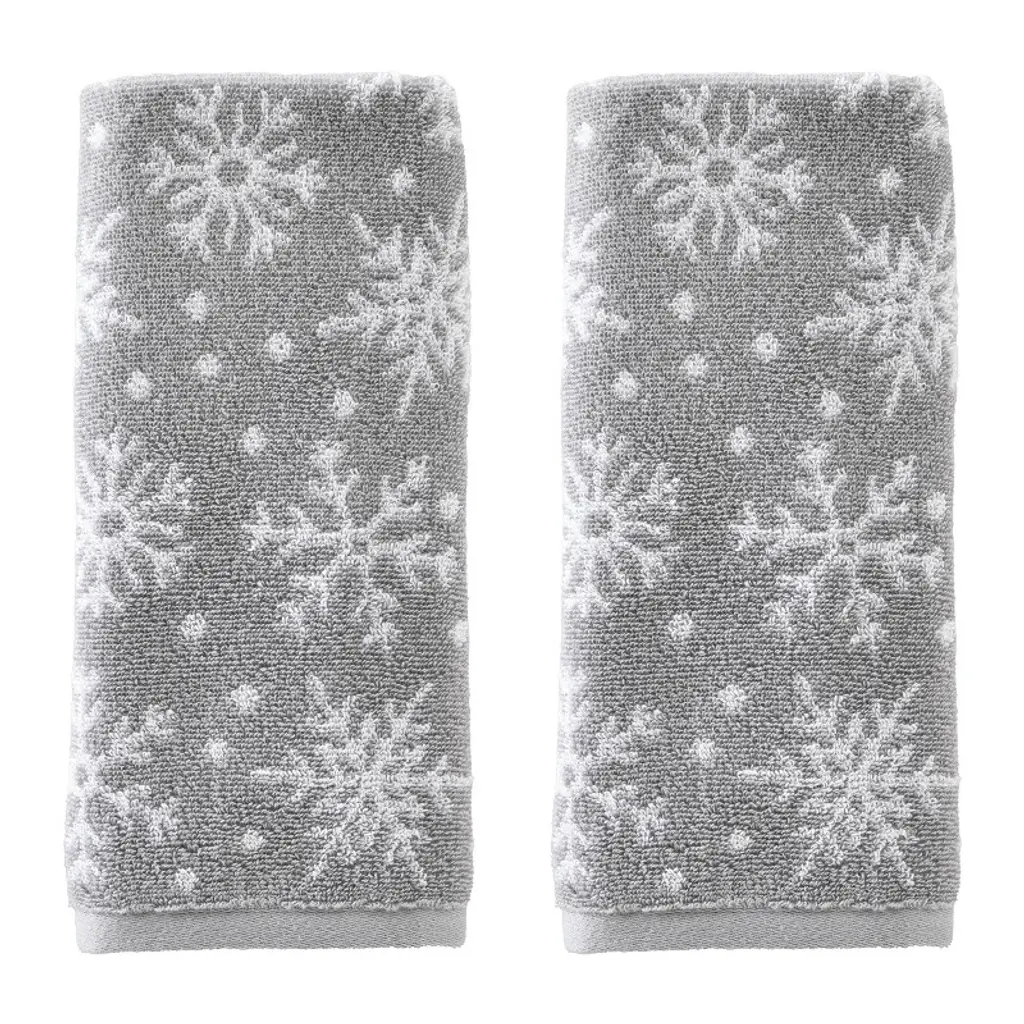 Add a fun, fresh look to your winter décor with this plush jacquard hand towel set, featuring a 2-tone fair isle pattern with snowflakes and holiday trees. The pattern is opposite in color on the reverse side, and they can be used in the bathroom or kitchen, and also make a great holiday gift. Coordinating bath towel sold separately. At SKL Home we bring personality, fun, and flair to your space with the best in home décor. We're a close-knit, small company full of big ideas in a wide variety of styles. From upbeat and modern, to classic and cozy, SKL Home has a look to complement any space. Combining 40+ years’ experience, global design inspiration, and the best fabrications, our employee-owned company continues to lead the way in home accessories.