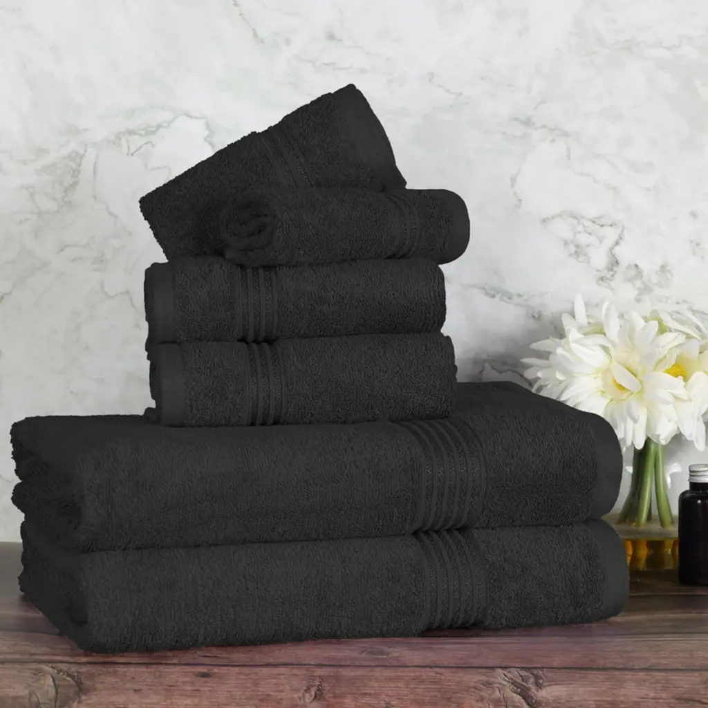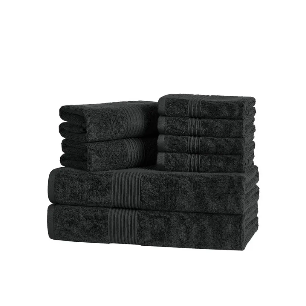 Bring a fresh, contemporary touch to your bathroom with the Franklin 8-Piece Hand Towel Set. Featuring a striking solid color and a chic chunky chevron border, this collection offers both style and everyday practicality for your hand-drying needs. Designed for efficient drying and convenience, these lightweight, thin, and quick-drying medium-sized hand towels are a versatile essential for your bathroom and kitchen. Experience their soft feel and the assurance of long-lasting quality. Ideal for everyday hand and face drying, accommodating guests, or adding a coordinated touch to your powder room, the array of vibrant, eco-friendly dyed colors will effortlessly integrate with your existing home furnishings, making this set a smart and stylish upgrade to your bath and kitchen linens.