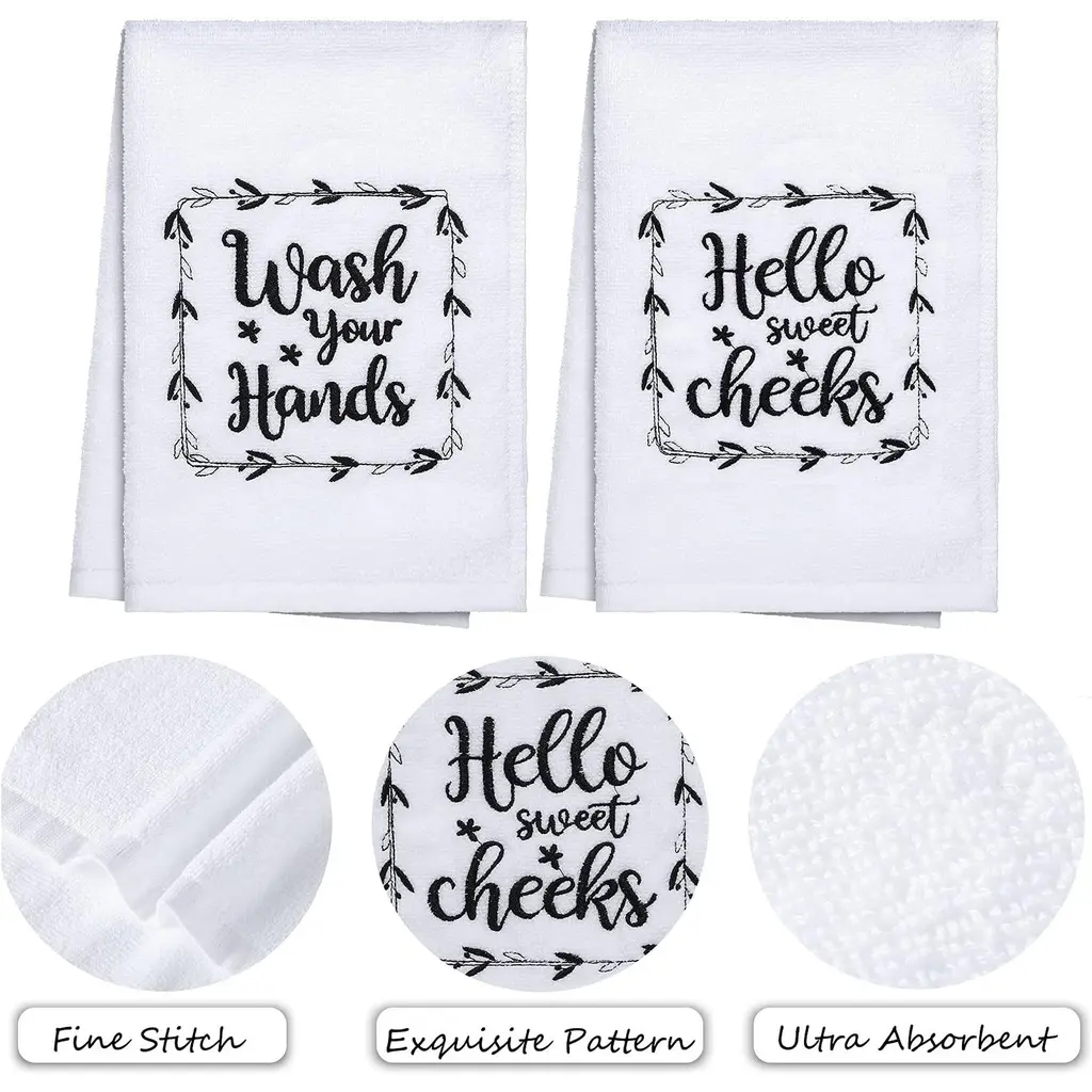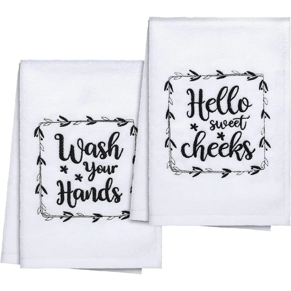 Funny Hand Towels With Sayings - 2 Pack White Farmhouse Decor 16x24 - White