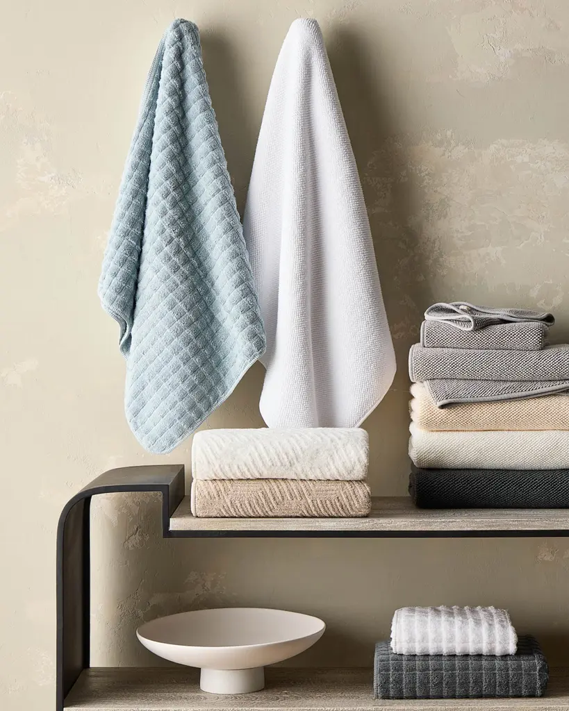 Wake up your senses with the Pearls Towel. Made with longer fibers and unparalleled density, each loop is carefully interwoven for sublime comfort. With an ultra-soft and absorbent texture, it has a great absorbent capacity that will reach its full capacity after the first few washes. However, using fabric softener during those first washes can reduce its absorption capacity. Crafted of 850 gsm cotton Pre-washed and pre-shrunk Approx. 30"L x 18"W Machine wash hot, tumble dry Do not dry clean Made in Portugal undefined