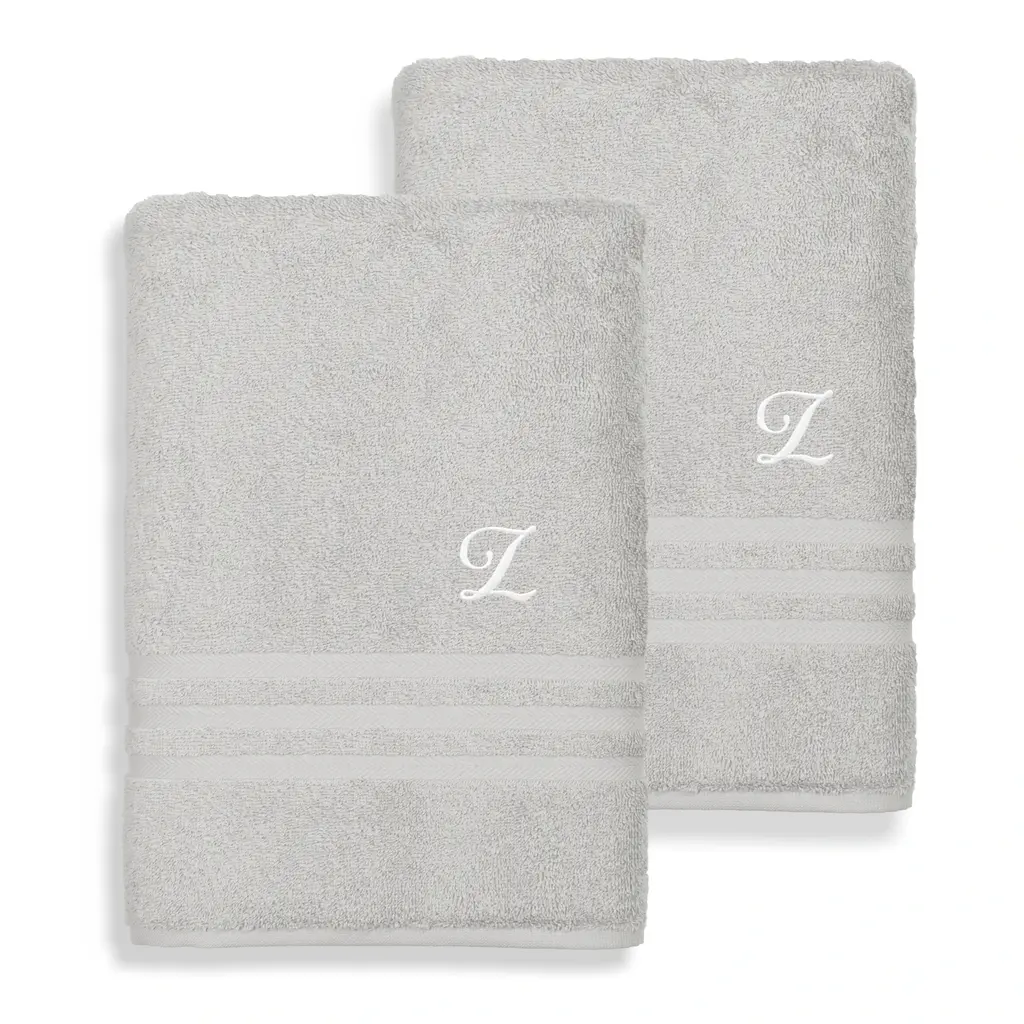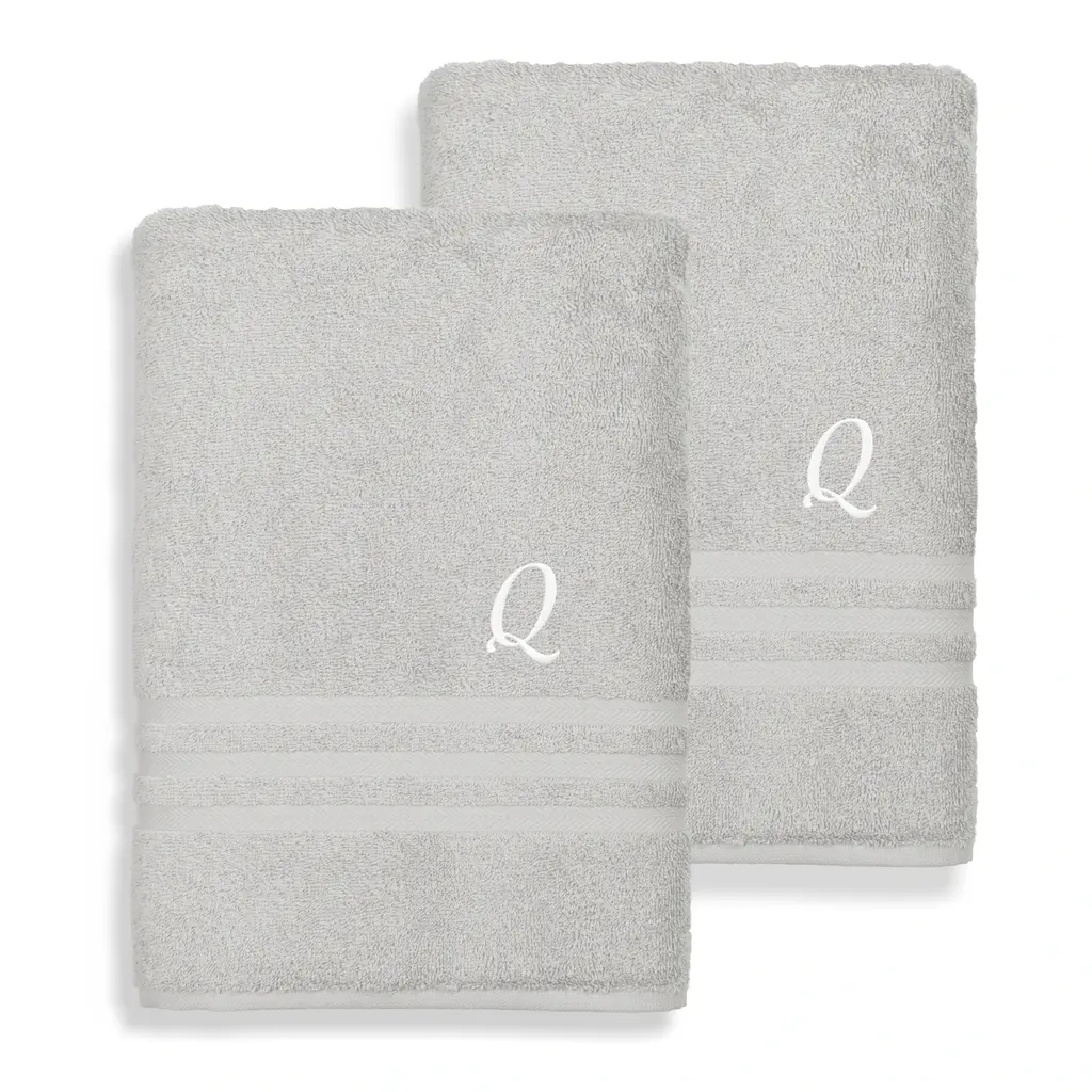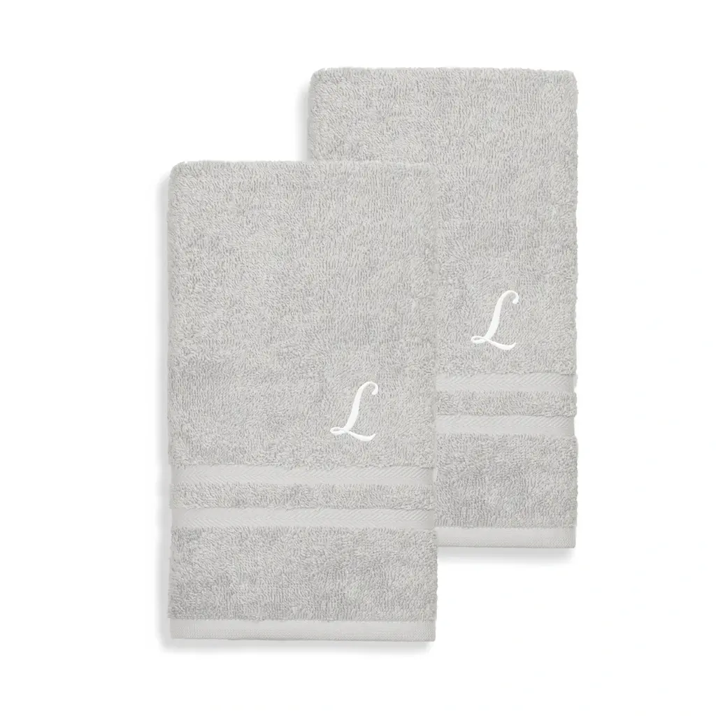 Gracewood Hollow John Turkish Cotton Set Of 2 Grey Hand Towels With White Script Monogr - Grey/e
