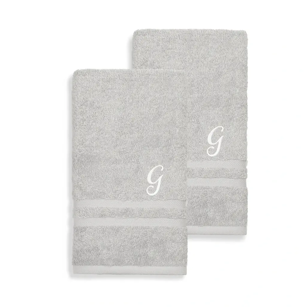 Gracewood Hollow John Turkish Cotton Set Of 2 Grey Hand Towels With White Script Monogr - Grey/f