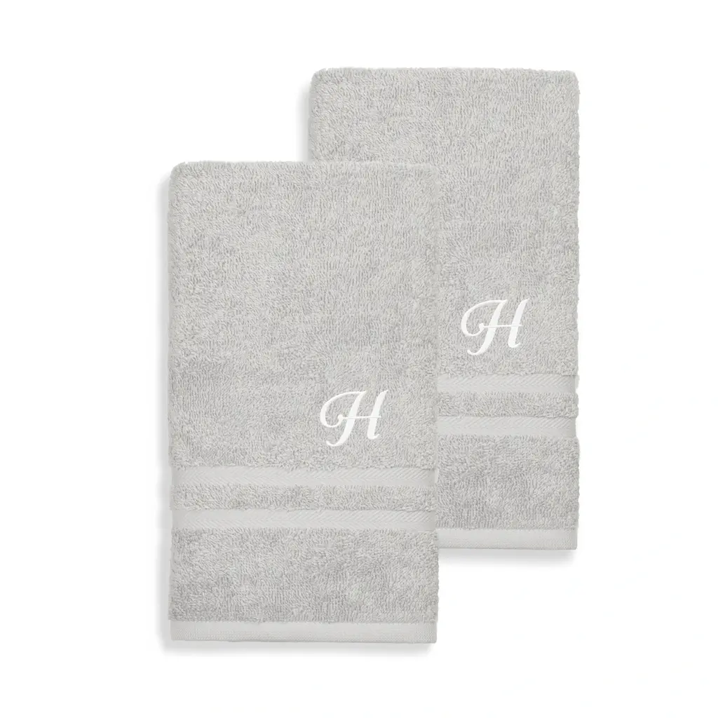 Luxuriate in the sophisticated style of the John Turkish cotton hand towels from Gracewood Hollow. With custom monograms in any letter of the alphabet, these 100-percent Turkish cotton hand towels offer maximum comfort and absorbency.Features:Set includes 2 hand towelsSolid grey towelWhite monogramSoft, thick and very absorbentLong-lasting towels designed for heavy useBecome softer with each washWill not pill or shedEco-friendlyMade of 100-percent Turkish cottonMachine washableMade in TurkeyMeasures 16 inches wide x 30 inches long