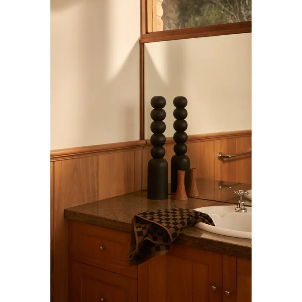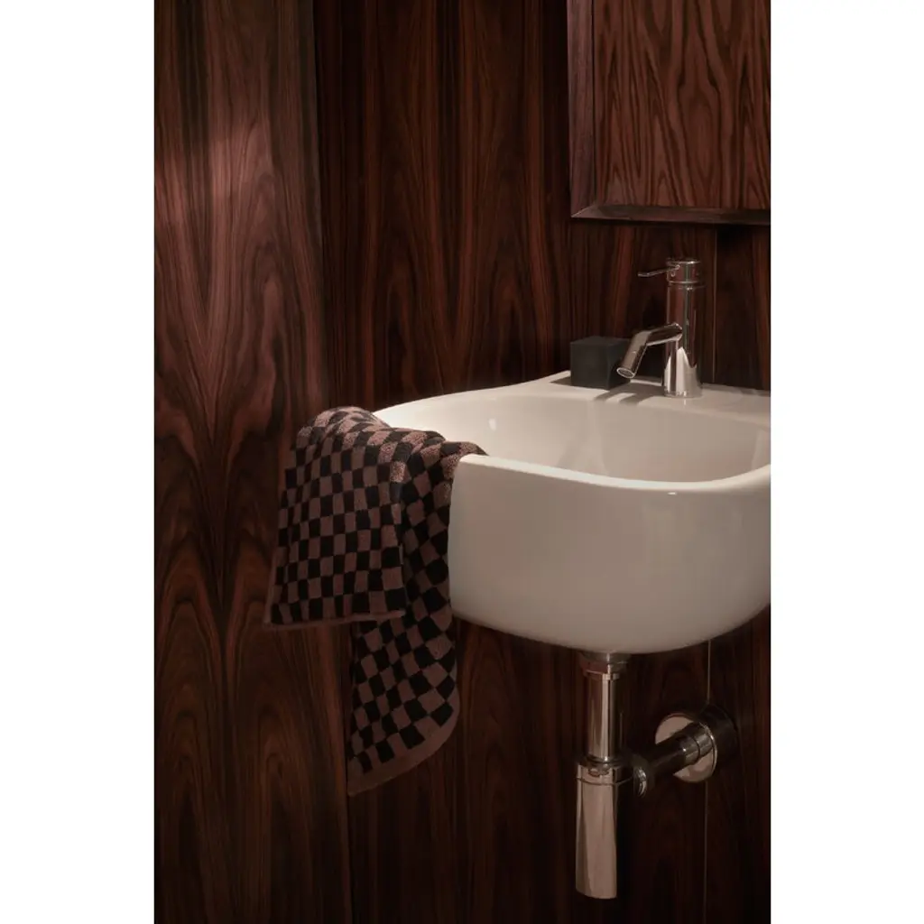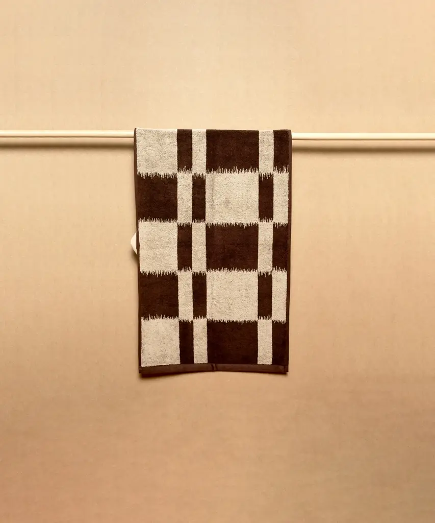 The Baina Josephine hand towel features a classic two-tone checkerboard pattern that exudes a luxurious nostalgic charm. This terry hand towel is made from plush, thick organic cotton, achieving the perfect balance between absorbency, softness and quick drying time. Baina's bathroom textiles are designed to bring luxury to everyday life, transforming daily bathing into a calm and enjoyable ritual. Their patterns draw inspiration from many directions, such as fine arts, architecture and color theory. Baina textiles are crafted from organic cotton at a weaving mill in Portugal.