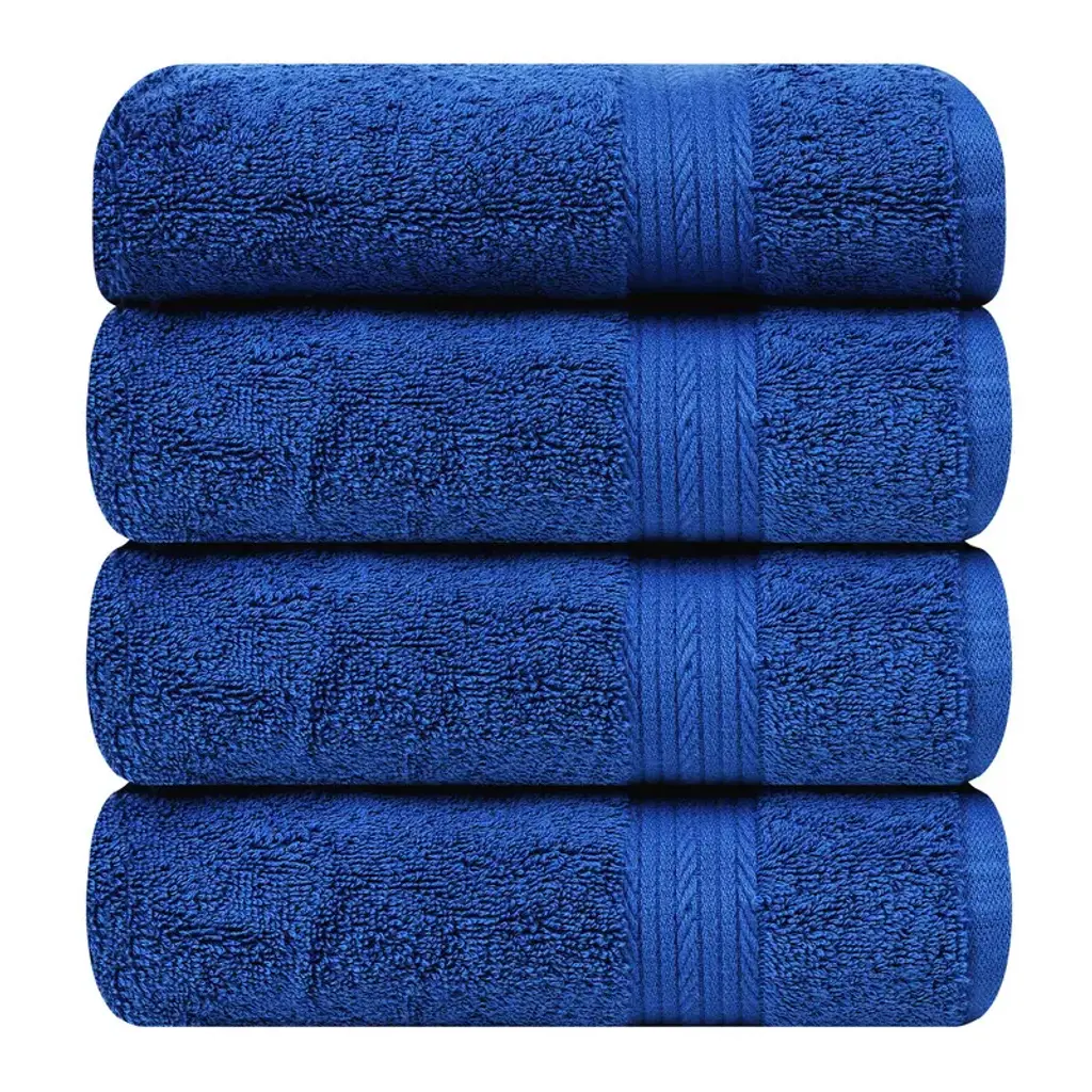 Hand Towels For Bathroom Cotton 600 Gsm 18x28 Inch By Ample Decor - 4 Pcs - Navy